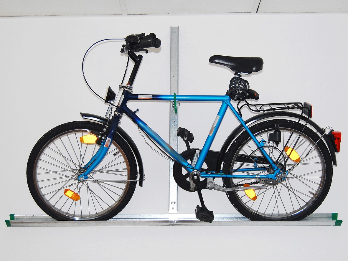 - завдяки рейлінгу велосипед після підвіски не займає багато місця внизу - він щільно прилягає до стіни, що особливо важливо, наприклад, у гаражі