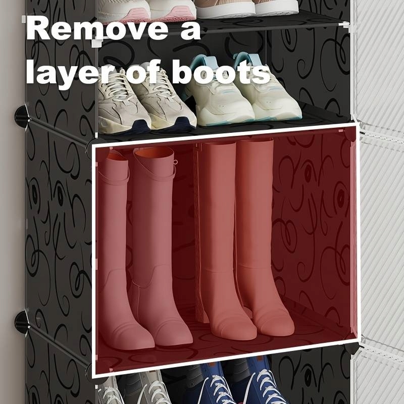 Крім того, шафа розроблена з урахуванням практичності, пропонує багато полиць, тож ви можете зберігати не тільки взуття, а й різноманітні взуттєві аксесуари, такі як щітки та просочення.