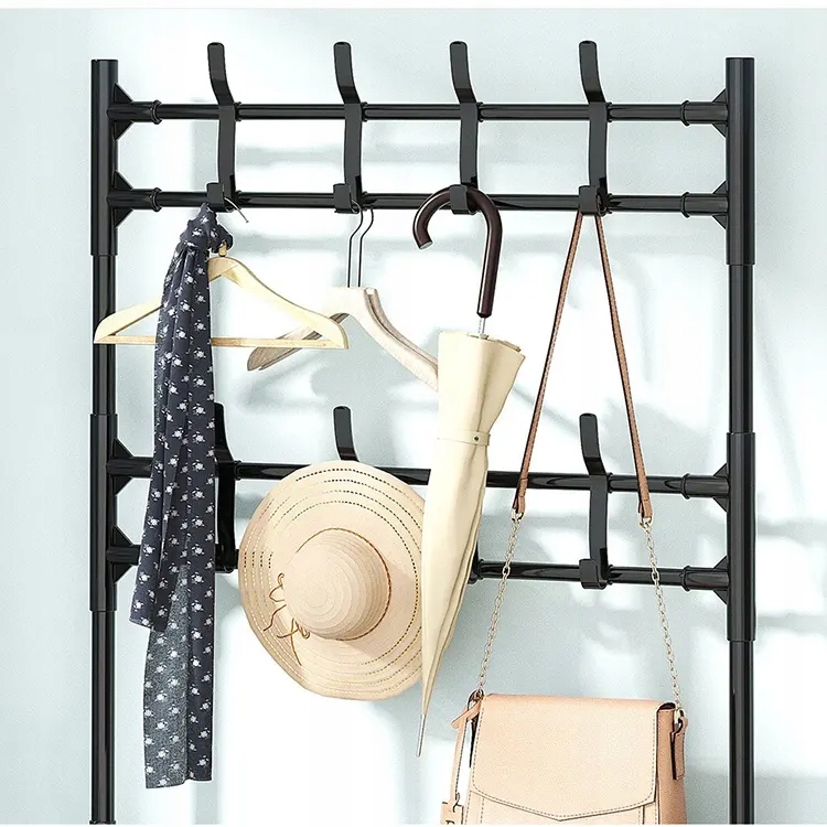 Два рівні вішалок збільшують простір для зберігання. Верхня планка і нижній рівень мають 4 гачки, на які можна повісити куртки або пальто. Нижній рівень можна використовувати для шарфів, хусток або сумочок.