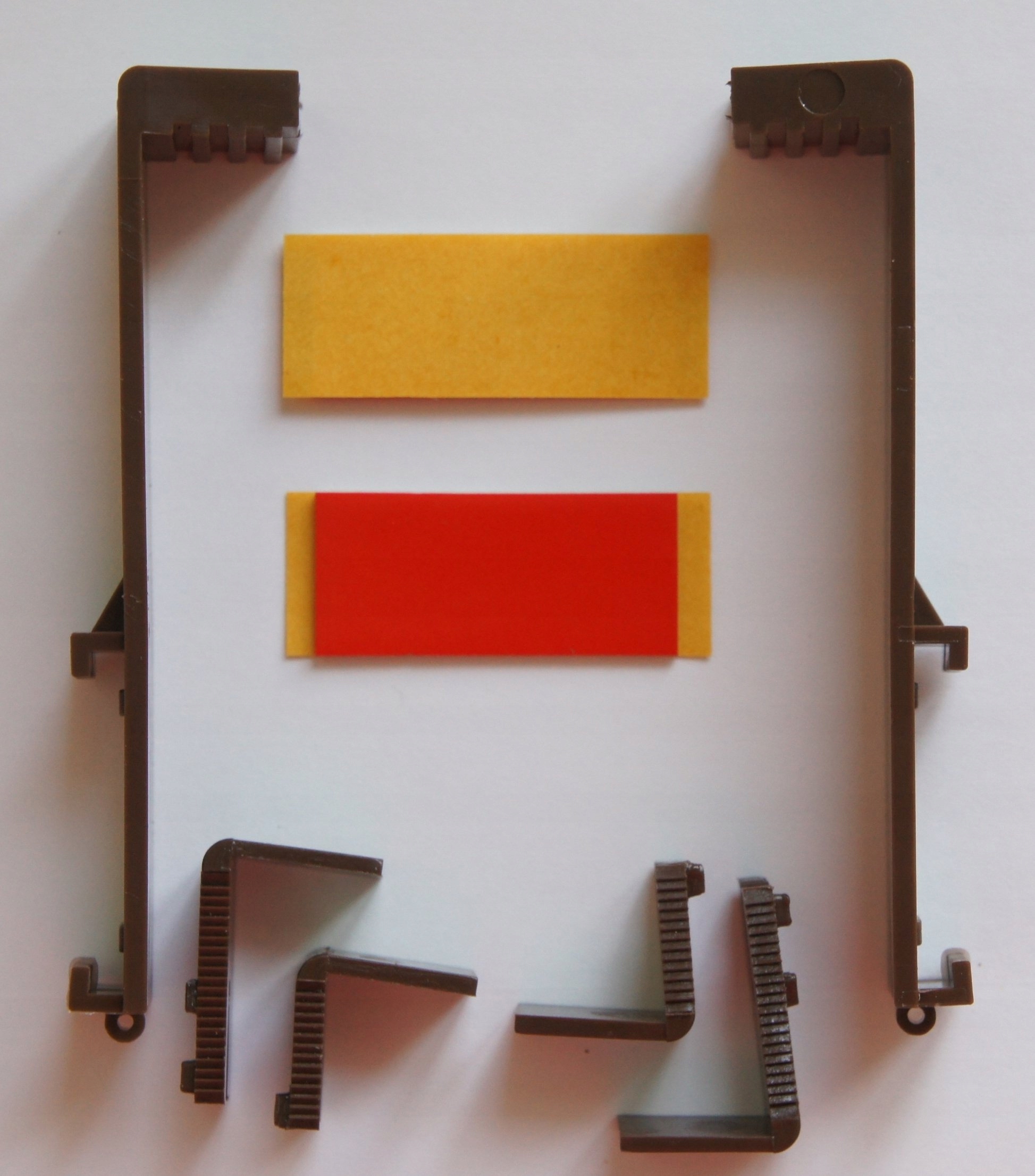 У набір входять самоклеючі кріплення, завдяки яким вся конструкція буде стійкою та довговічною. Виріб виготовлений із пластику. Він стійкий до шкідливого впливу інтенсивного сонячного світла та змінних температур.