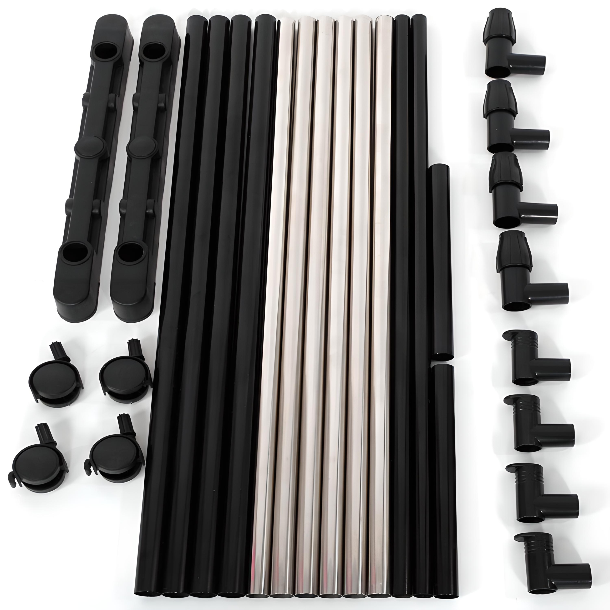 Подвійні вішалки для одягу, які витримують навантаження до 30 кг. Зазвичай вони виготовлені з міцних матеріалів, таких як нержавіюча сталь або алюміній, які стійкі до пошкоджень і корозії. Крім того, цей тип вішалок зазвичай розроблено з міцними замками та функціями безпеки, які забезпечують стабільність і безпеку під час використання. Ці вішалки ідеально підходять для зберігання важчого одягу, наприклад жакети, пальто або довгі сукні.
