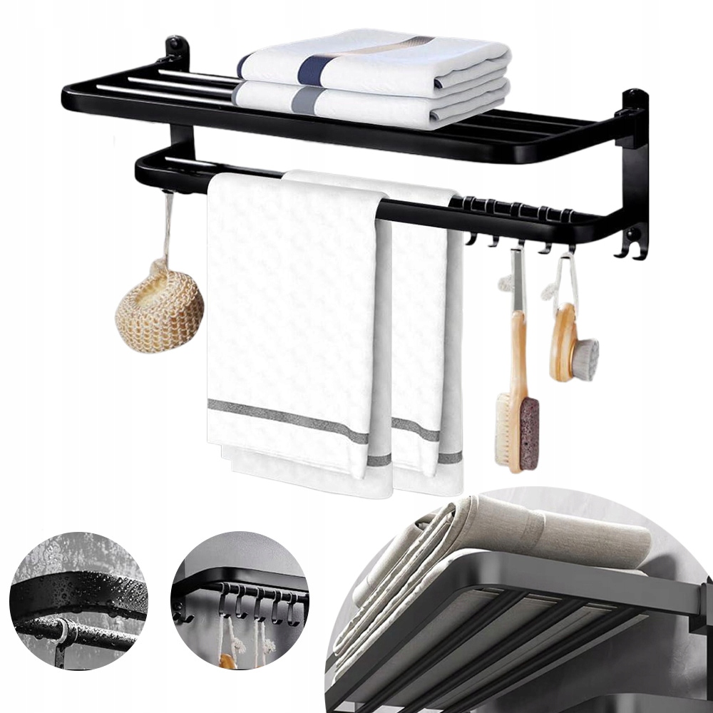 Вішалка для рушників у ванній обладнана 2-шаровою вішалкою для рушників і 5 рухомими гачками для рушників, у якій достатньо місця, щоб ваша родина могла зберігати або розвішувати рушники, речі та швидко їх сушити.