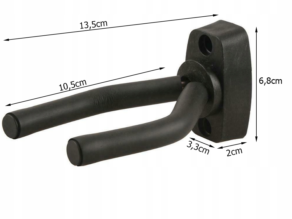 Призначений для настінного кріплення набір включає 2 гвинти та 2 монтажні штифти. Він має металеві кронштейни, покриті м’якою губкою, що захищає обладнання від подряпин і пошкоджень. Гачок регулюється, максимальна відстань приблизно 4,5 см, підлаштовується під ширину штанги.