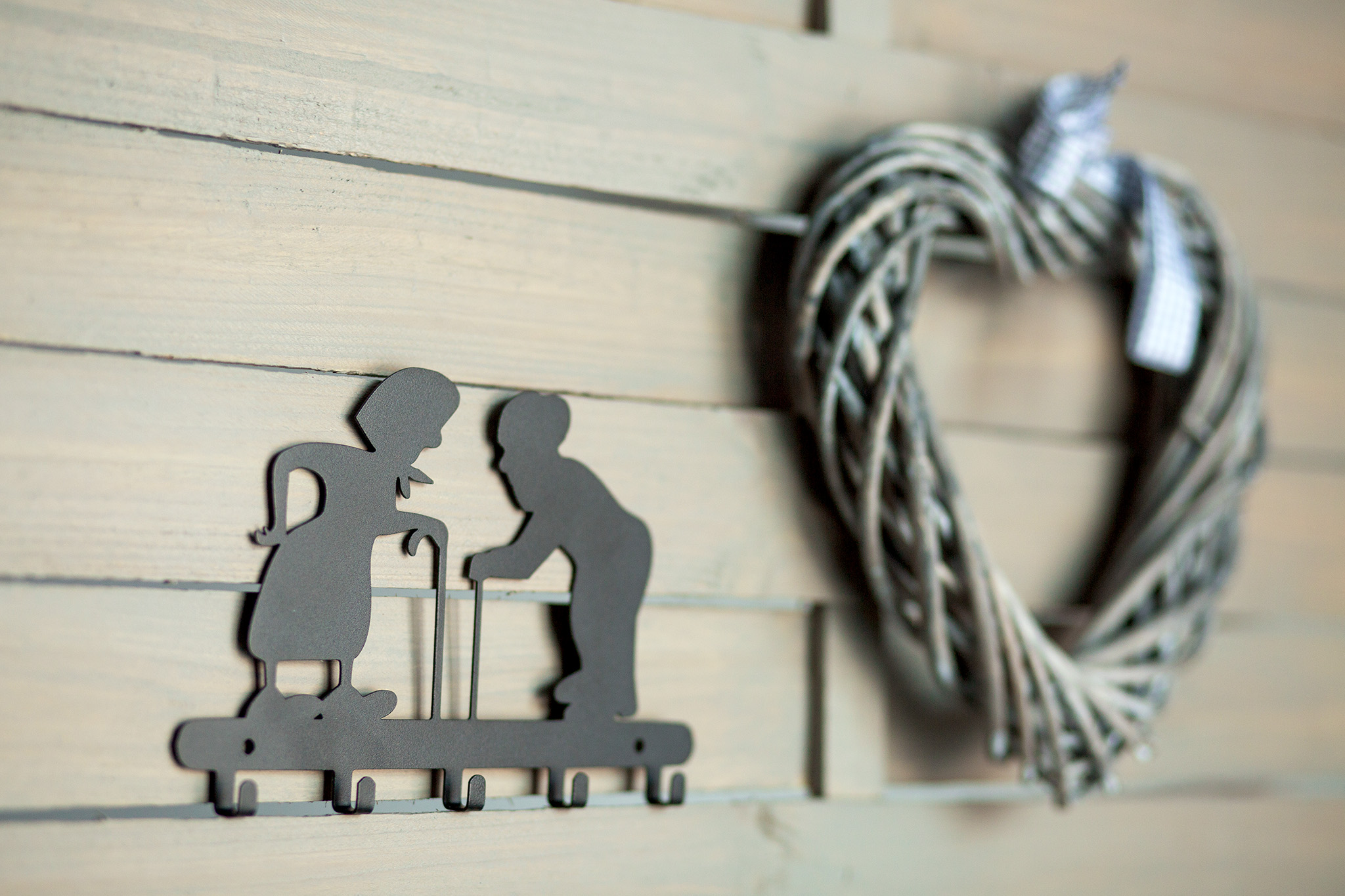 Вішалка для ключів із зображенням бабусі та дідуся стане чудовим подарунком для наших незамінних і улюблених бабусь і дідусів. Міцна вішалка для ключів зі сталі - це практичний гаджет, який чудово виглядає як цікавий елемент інтер'єру, дозволяючи легко і функціонально розмістити ключі, шарфи та інші дрібниці. Швидка і проста збірка дозволяє розмістити вішалку для ключів на будь-якій гладкій поверхні, а порошкове покриття робить вішалку стійкою до забруднень і легко миється.