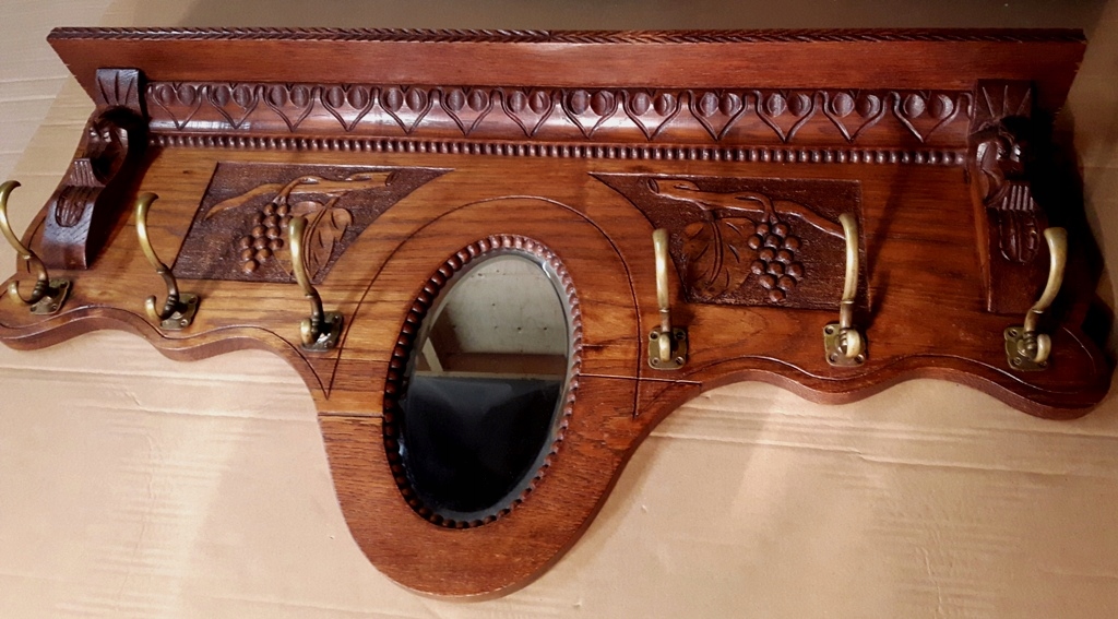 ВІШАЛКА НАСТІННА ДУБОВА З ПОЛИЧКОЮ І ДЗЕРКАЛОМ 96/47
