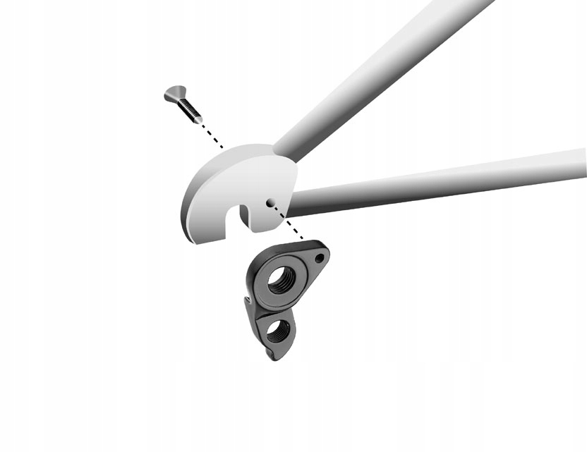 - Кріплення заднього перемикача H585 для перемикачів зі стандартним кріпленням (без прямого кріплення) для рам із наскрізною віссю 12 мм. Збірка зовні за допомогою 1 гвинта, різьблення в підвісі.