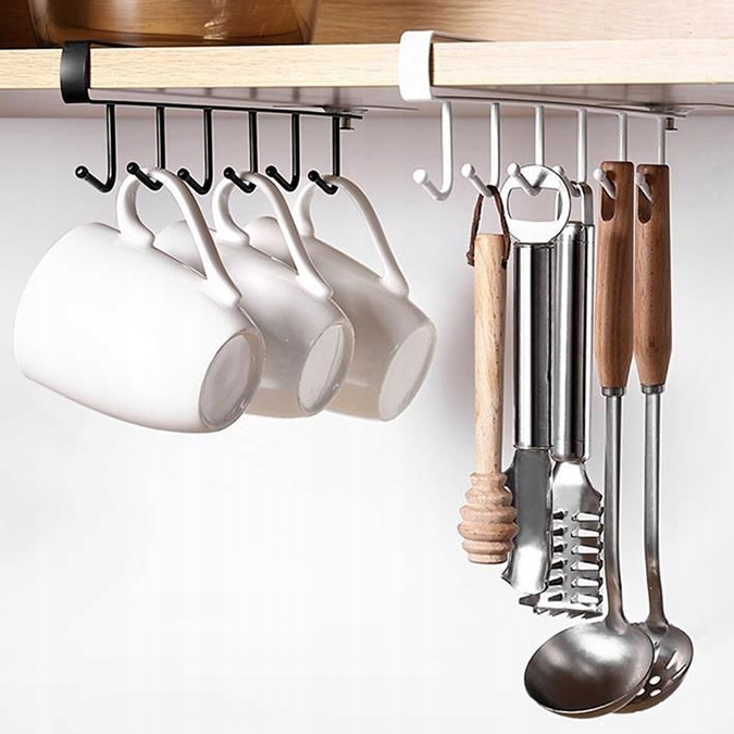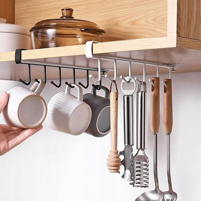 Практичний підвісний тримач для чашок та інших аксесуарів- чудове рішення, особливо на маленькій кухні. Ви можете встановити його на стіні або під шафою, забезпечуючи коштовний простір. Ви також можете використовувати його: