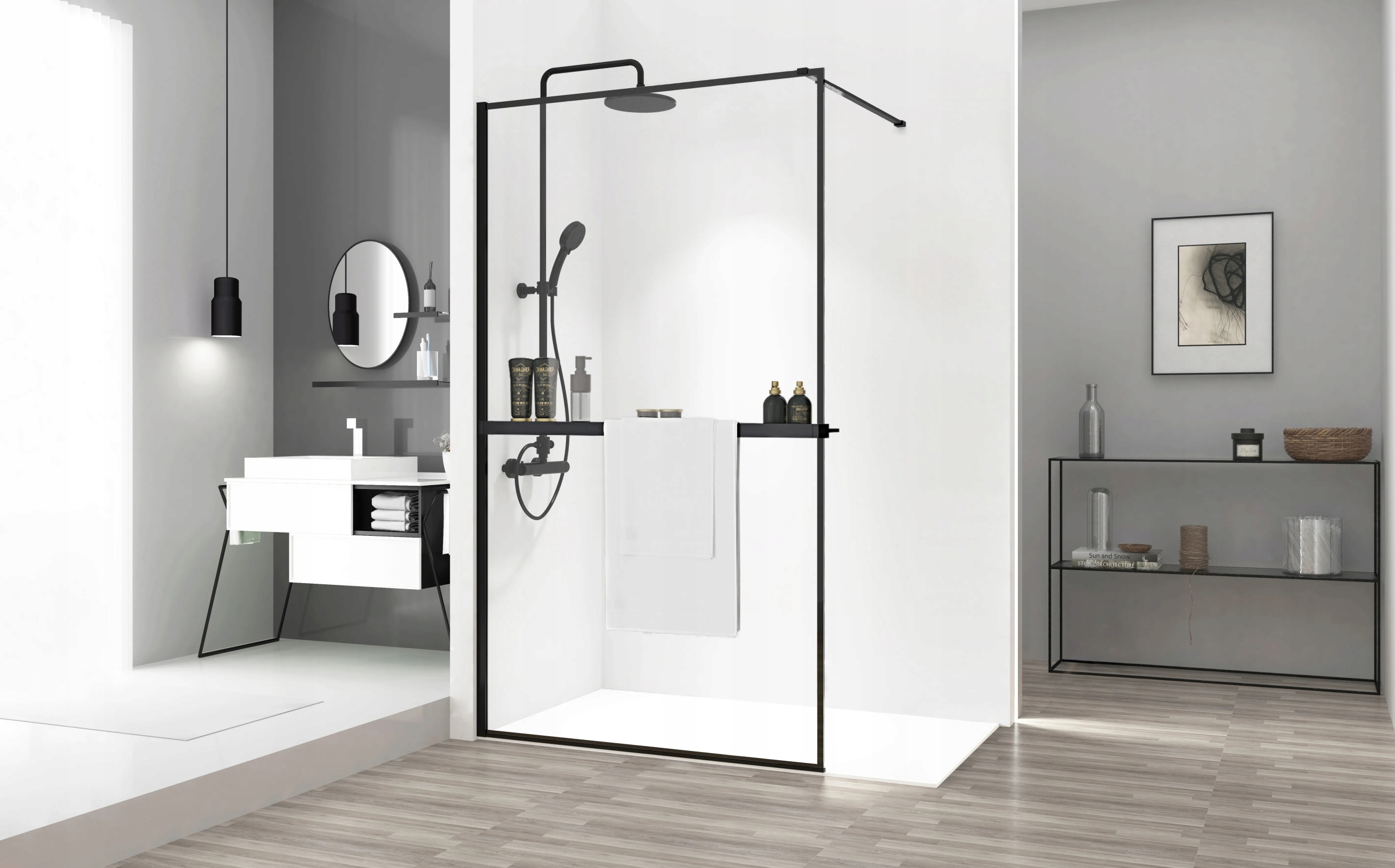 Практичну полицю Evo з вішалкою для рушників можна встановити на стіни душу REA, які пропонуються на наших аукціонах. Виготовлений з високоякісного алюмінію, покритого матовим чорним кольором, який стійкий до пошкоджень і подряпин. Практична полиця допоможе вам підтримувати порядок у ванній кімнаті, а її сучасний вигляд стане додатковим декоративним елементом вашої ванної кімнати.