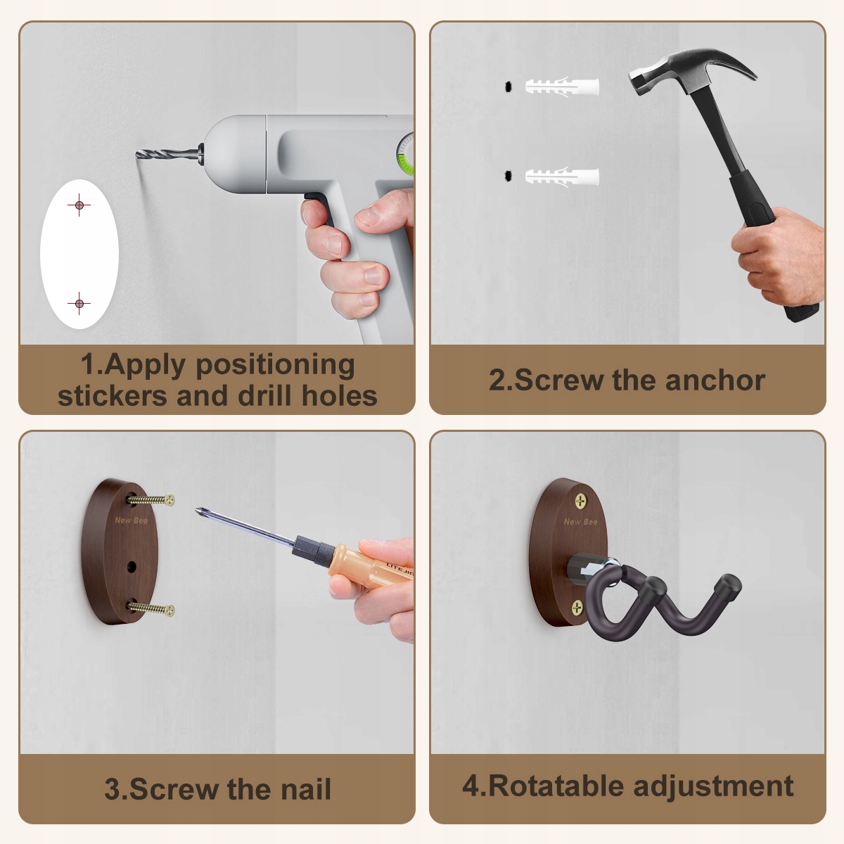 Ця настінна вішалка для гітари, оснащена довгими металевими гачками та гвинтами, підходить для різних типів інструментів, таких як укулеле, акустична гітара, електрогітара, скрипка, піпа та інші. На нього також можна повісити дрібні аксесуари (наприклад, пов’язки, гумки для волосся тощо).