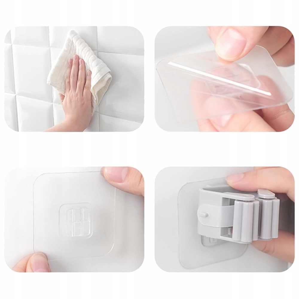 Практичний тримач для швабри з пластику та самоклеючої подушечки.