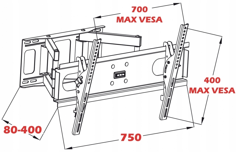 Настінний тримач для монітора PLAZMA / LCD / TV 30-70" до 60 кг, відстань від стіни 80 - 400 мм