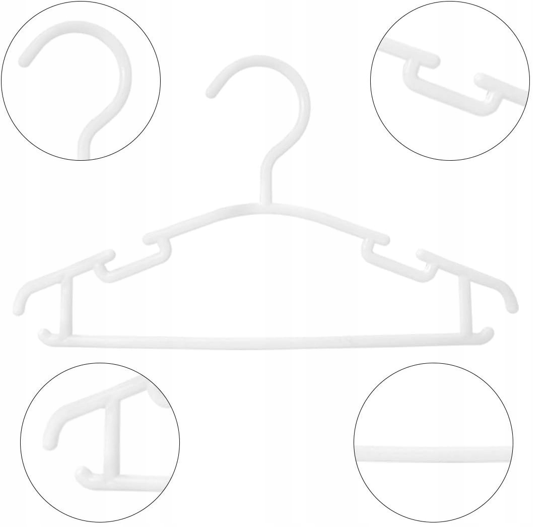 • Ширина пластикових вішалок для одягу дітей і немовлят адаптована до стандартної полиці в гардеробі. Гачки для дитячої кімнати виготовлені з поліпропілену найвищої якості, який не виділяє неприємних хімічних речовин.