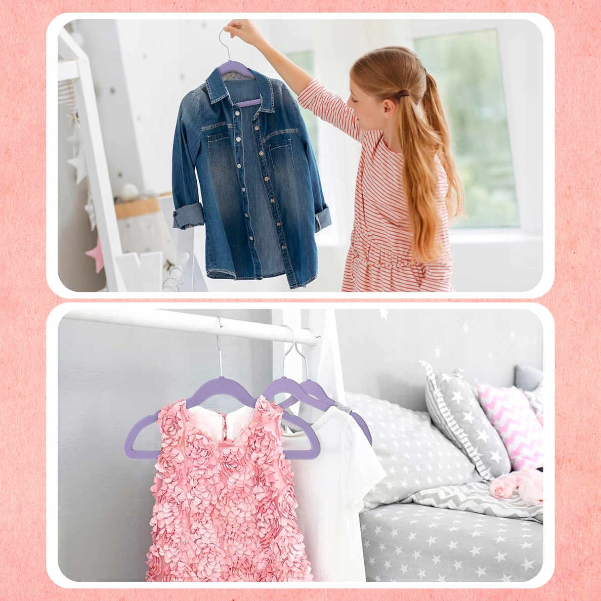 Велюрові вішалки в кольорах: білий, рожевий, фіолетовий красиві та стильні, ідеально підходять для дитячого гардеробу. Вішалки підкреслюють цінність одягу і створюють гармонійне єдине ціле з інтер'єром гардеробу або вбиральні.