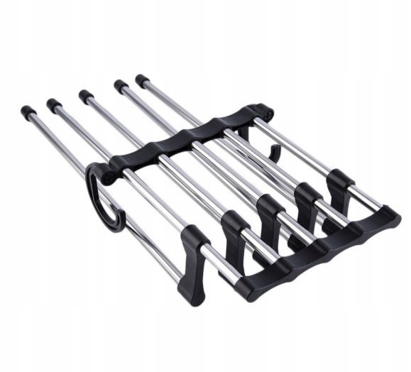 Висувна вішалка для штанів — це практичне доповнення до гардеробу, яке заощадить місце та полегшить упорядкування одягу. У цій вішалці є місце для 5 пар штанів, тому ви можете легко помістити на неї всі свої улюблені штани.