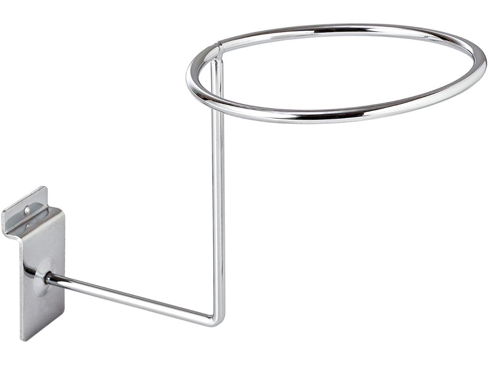 Опис: Власник вішалки для капелюхів, кульок, шоломів тощо, встановленого на панелі магазину Slatwall. Зроблено з дроту, цілком хром.