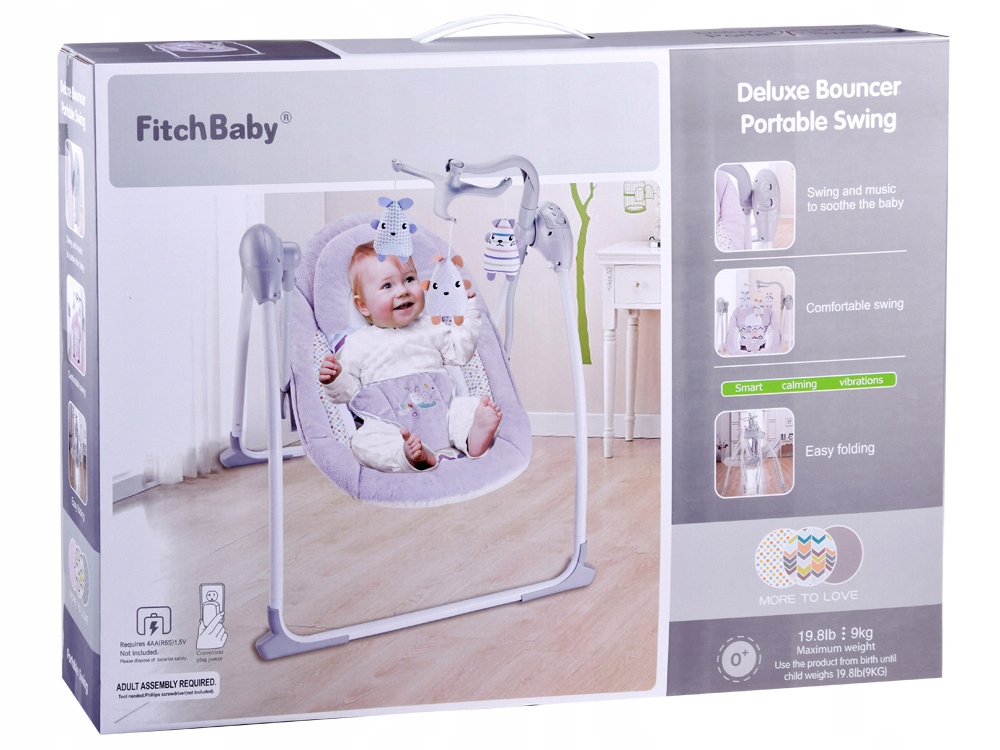 - регульована сила гойдання - гойдалки оснащені триступеневим регулюванням швидкості гойдання, що дозволяє легко налаштувати іграшку під потреби малюка.