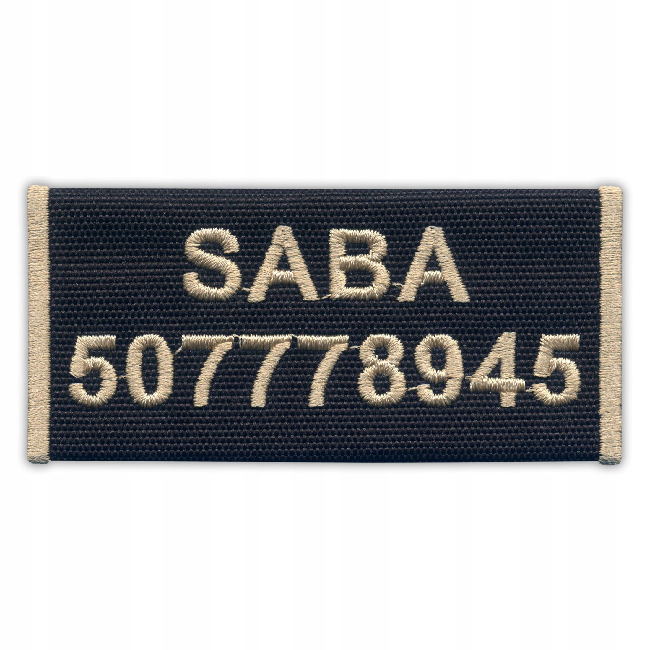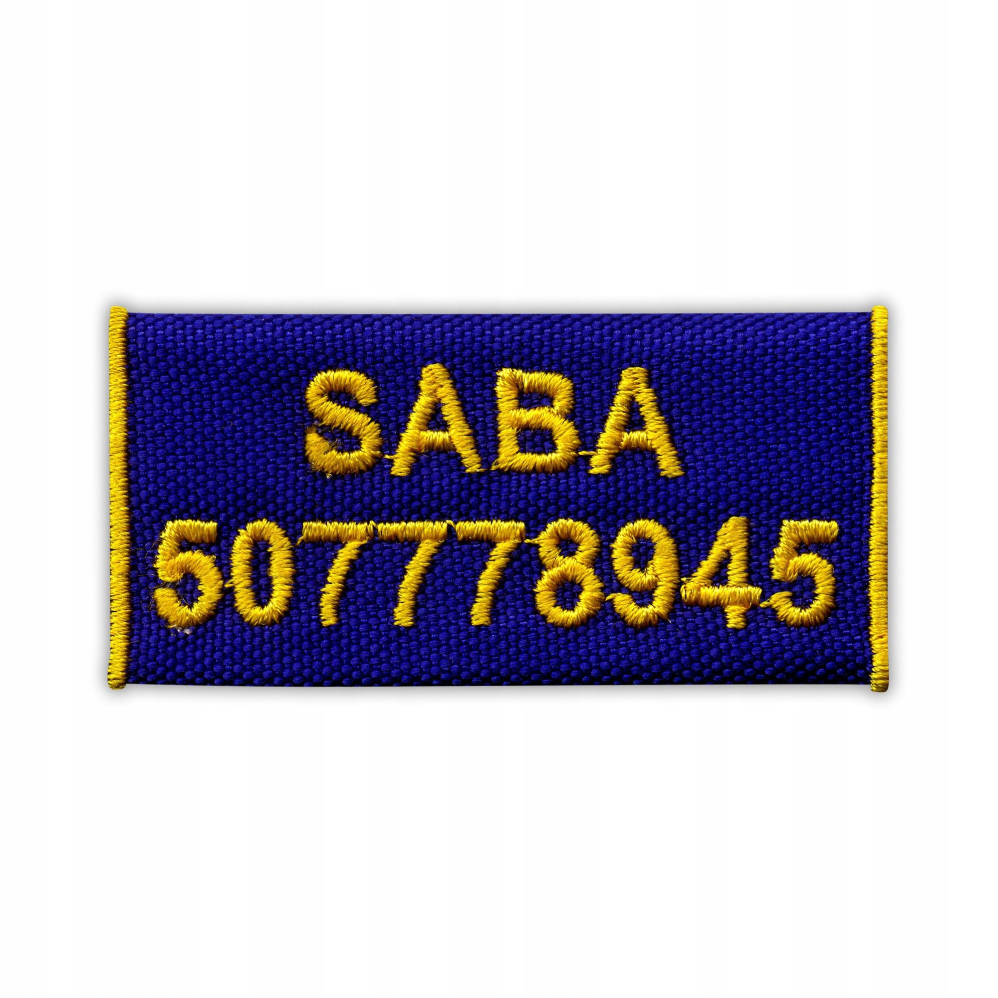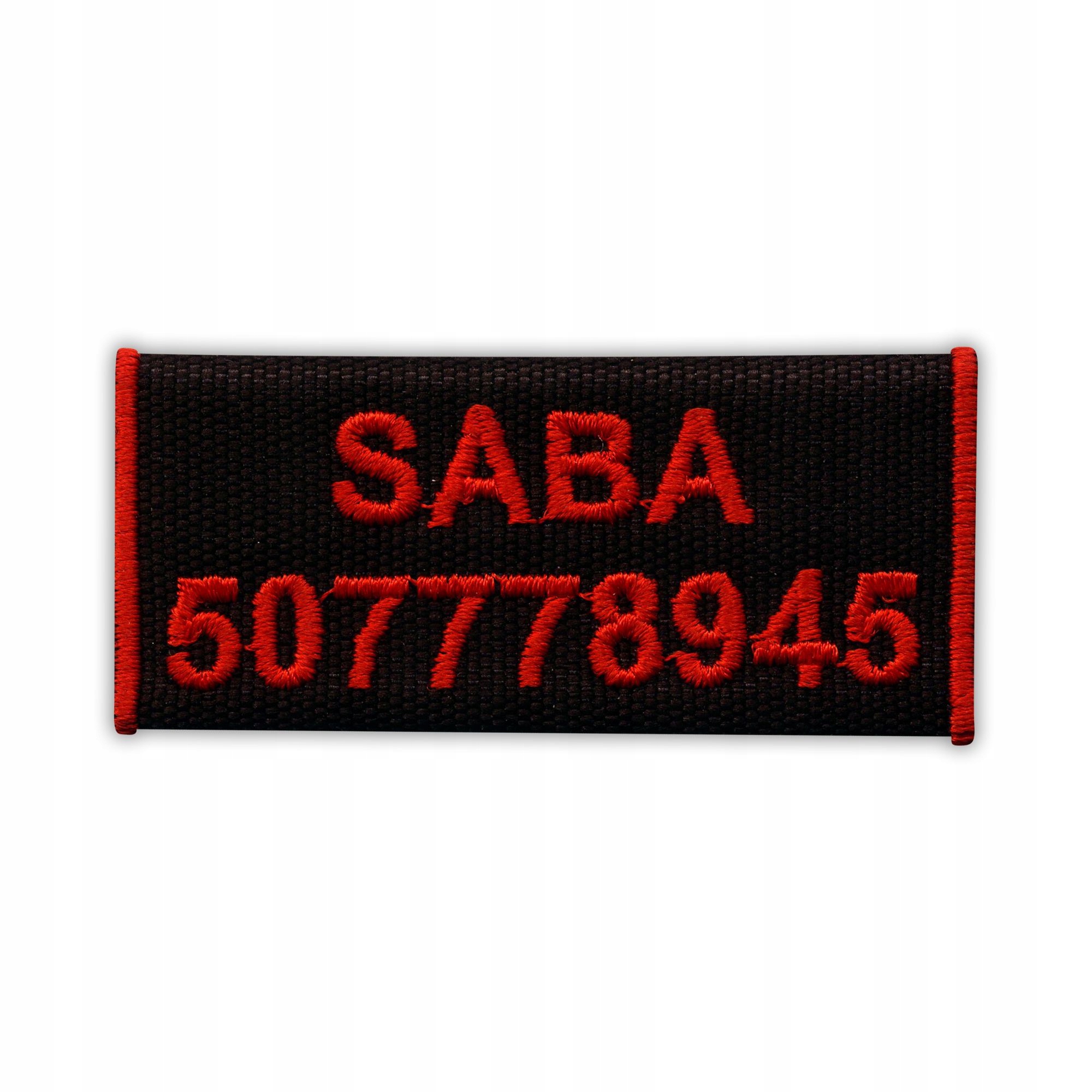 Вишита адресна бирка з вашим текстом (номер телефону, адреса або ім'я), прикріплена за допомогою липучки.
