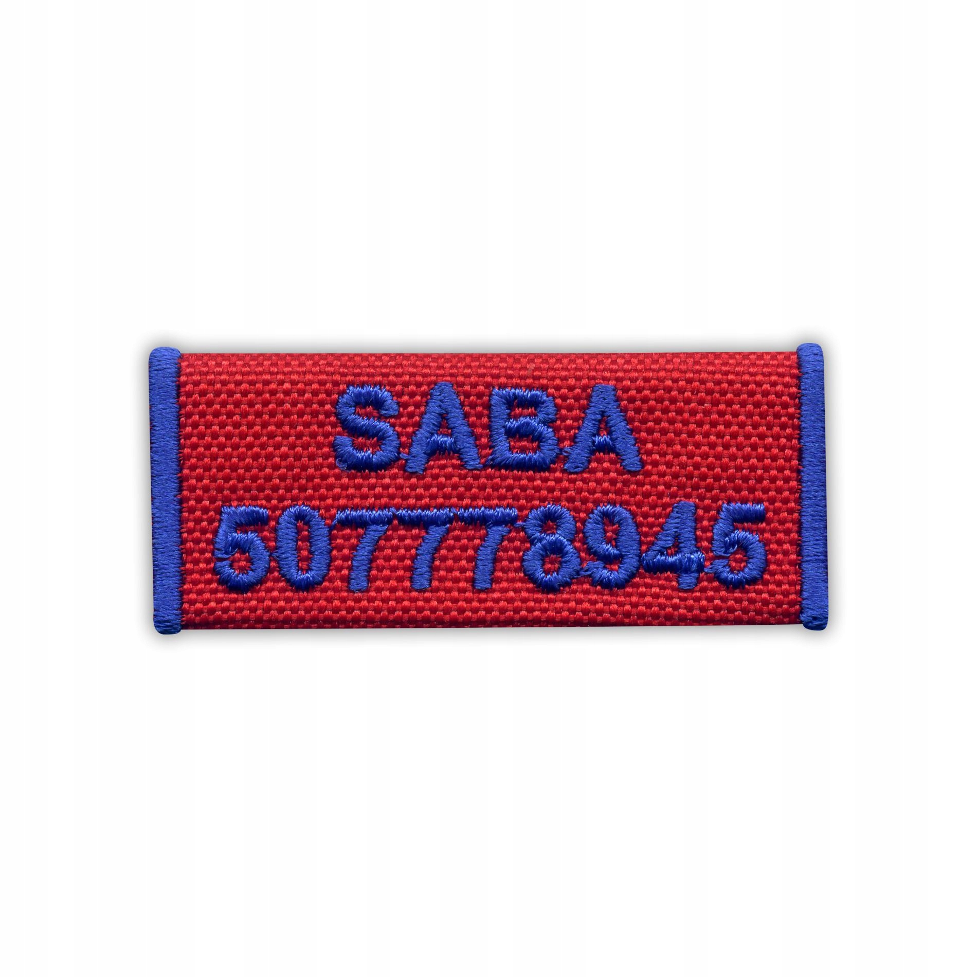 Вишита адресна бирка з вашим текстом (номер телефону, адреса або ім'я), прикріплена за допомогою липучки.