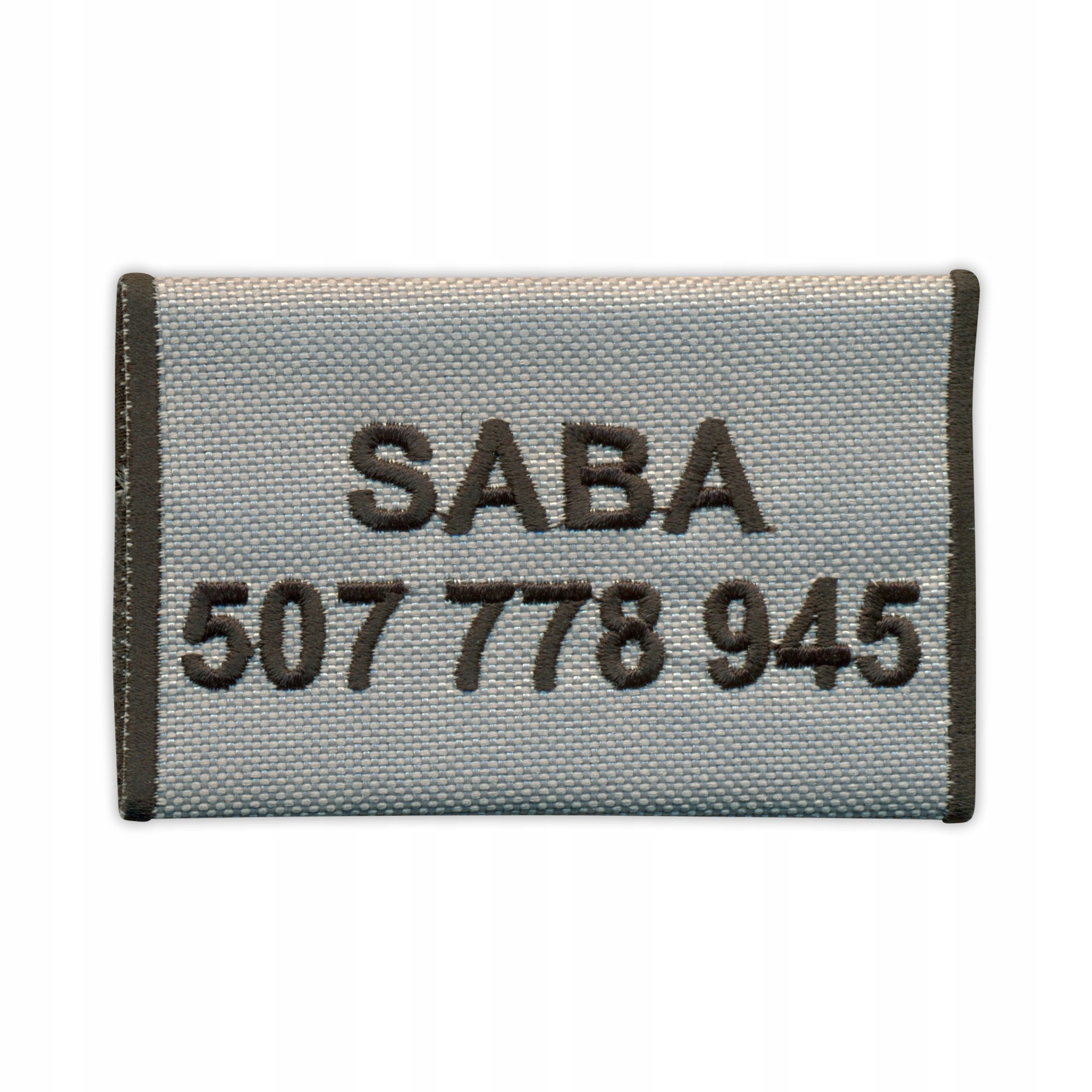 Вишита адресна картка з вашим текстом (номер телефону, адреса або ім’я), прикріплена за допомогою липучки.