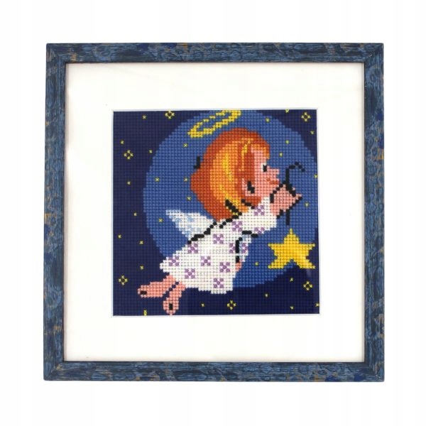 Ця гарна вишита картина показує нам мале дитя з крилами, яке вночі літає серед зірок. Одягнена в яскраві яскраві кольори, дитина посміхається і почувається в безпеці серед зоряного неба. Його ніжні очі дивляться крізь темряву, що згущується, а крила б'ють по блакитній поверхні хмар. Цей дивовижний вид збуджує уяву і надихає мріяти про далекі подорожі по зірках. Вишита композиція поєднує чудові художні прийоми з магією казкового сюжету та запрошує до своєї краси.