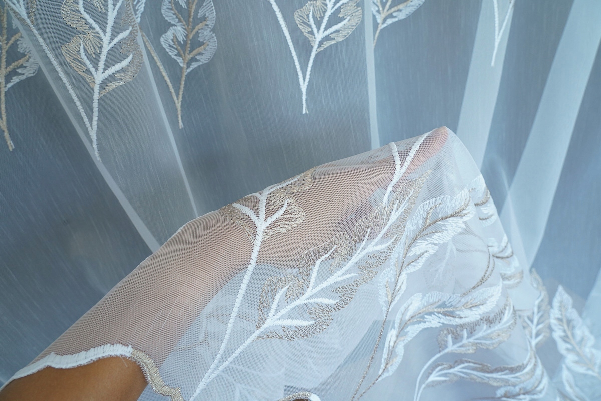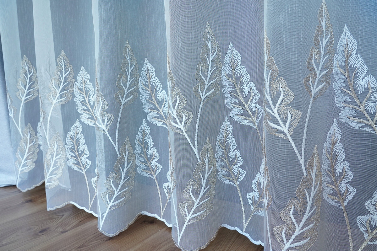Вишита завіса 300 золотих вишитих листя 242666 повітряна сітка 0,5 Мб