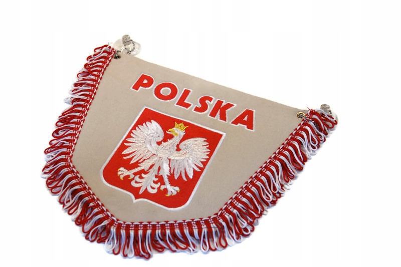 Предмет продажу п'ятикутний вимпел з гарно вишитим гербом та написом Польща. Це було зроблено з особливою увагою до деталей.