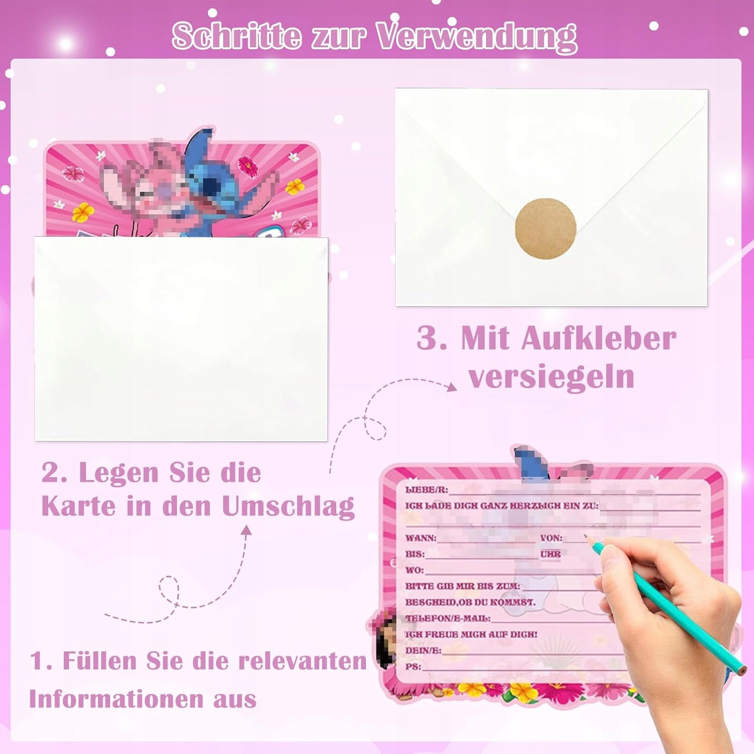 Запрошення на дитячий день народження, запрошення на дитячий день народження, запрошення на вечірку для дівчат, 12 листівок на день народження та стикерів + 12 конвертів + 25 наклейок, на день народження дитини (німецька)