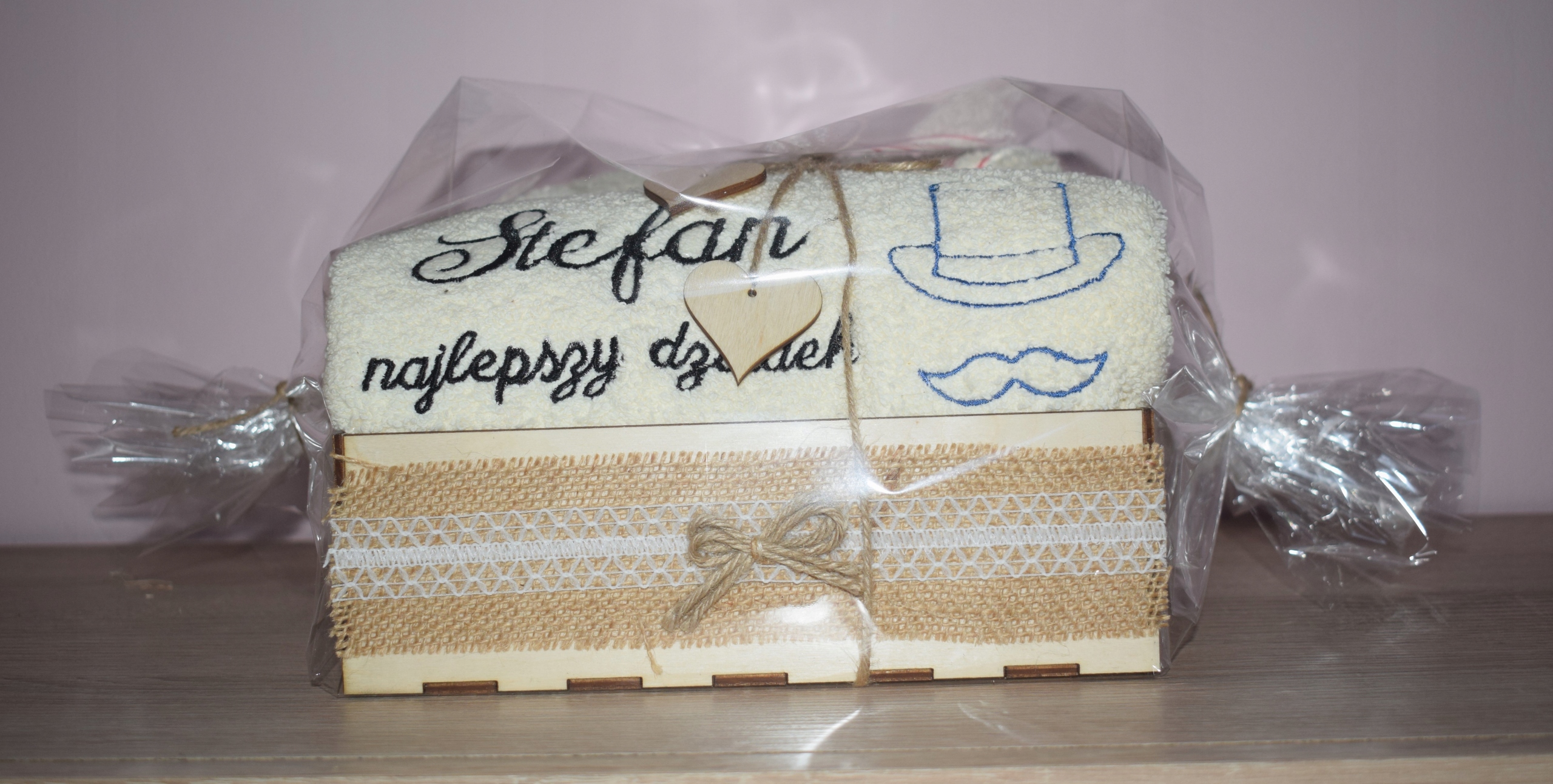 У вартість набору входить вишивка на рушнику, яка складається з короткого тексту, наприклад, «Люба мамо», імен, наприклад, АГНЕШКА ТА ШИМОН, та обраної графіки.