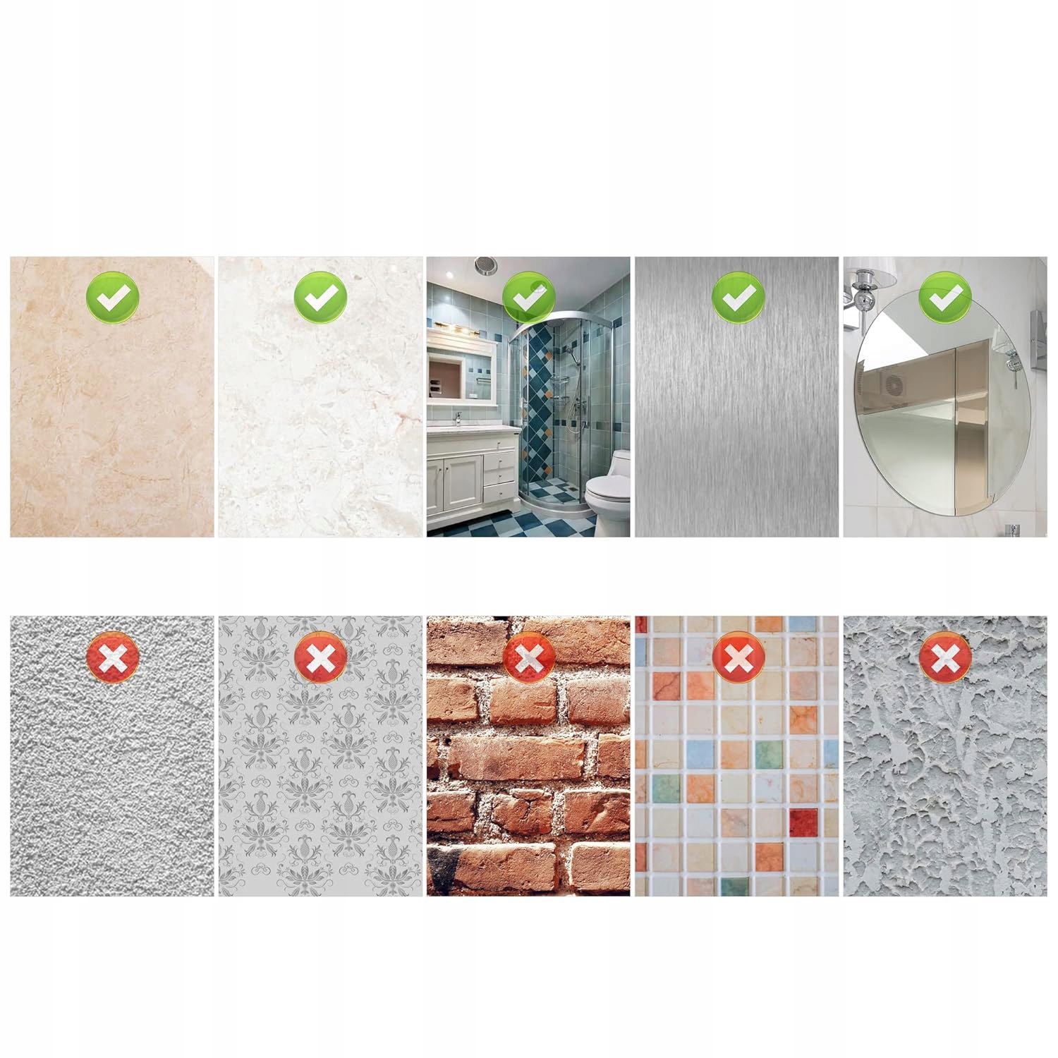 Рушники для ванної кімнати можна кріпити поруч із шафкою для ванної кімнати, кухонними ганчірками, з обох боків меблів для ванної кімнати або на гладких поверхнях, таких як плитка, мармур, масивне дерево, стіни тощо. Тримачі для рушників підходять лише для чистих, стійких і гладких поверхонь. стіни.