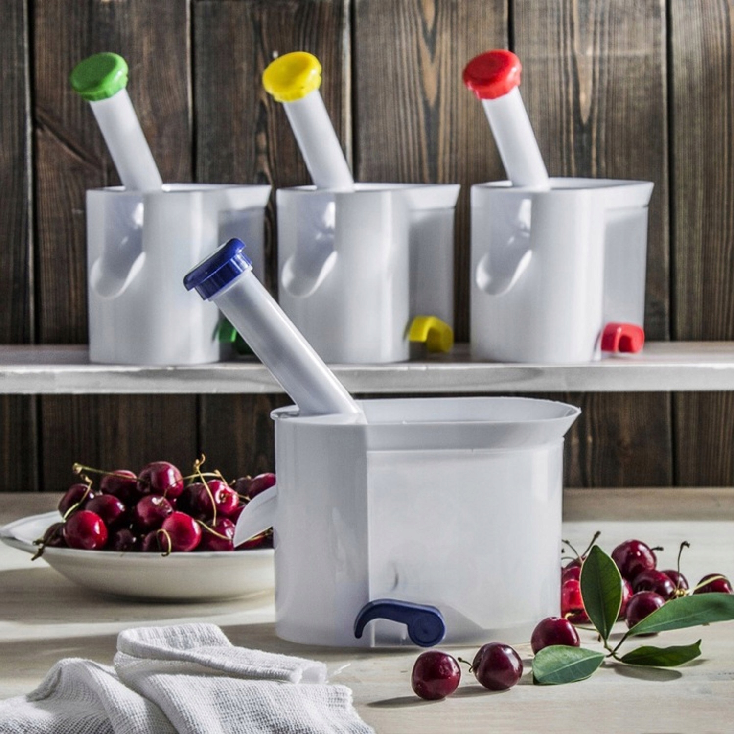 оснащений простим, але ефективним пружинним механізмом, який дозволяє швидко та точно видалити насіння вишні та вишні, не пошкоджуючи плодові м’якоті. Завдяки цьому фрукти зберігають свою форму та естетичний вигляд.