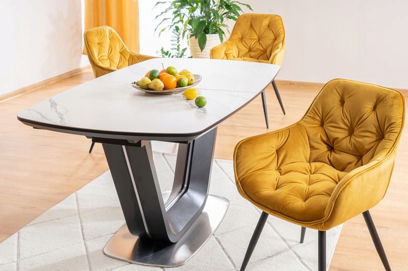 Унікальне крісло Cherry Velvet завдяки своїй оксамитовій стьобаній тканині чудово впишеться як у сучасну вітальню, так і в офіс. Комфорт відпочинку забезпечує оптимальне положення сидіння та зручні підлокітники. Оббивка кольору каррі переливається на світлі та контрастує з тонкою чорною основою.