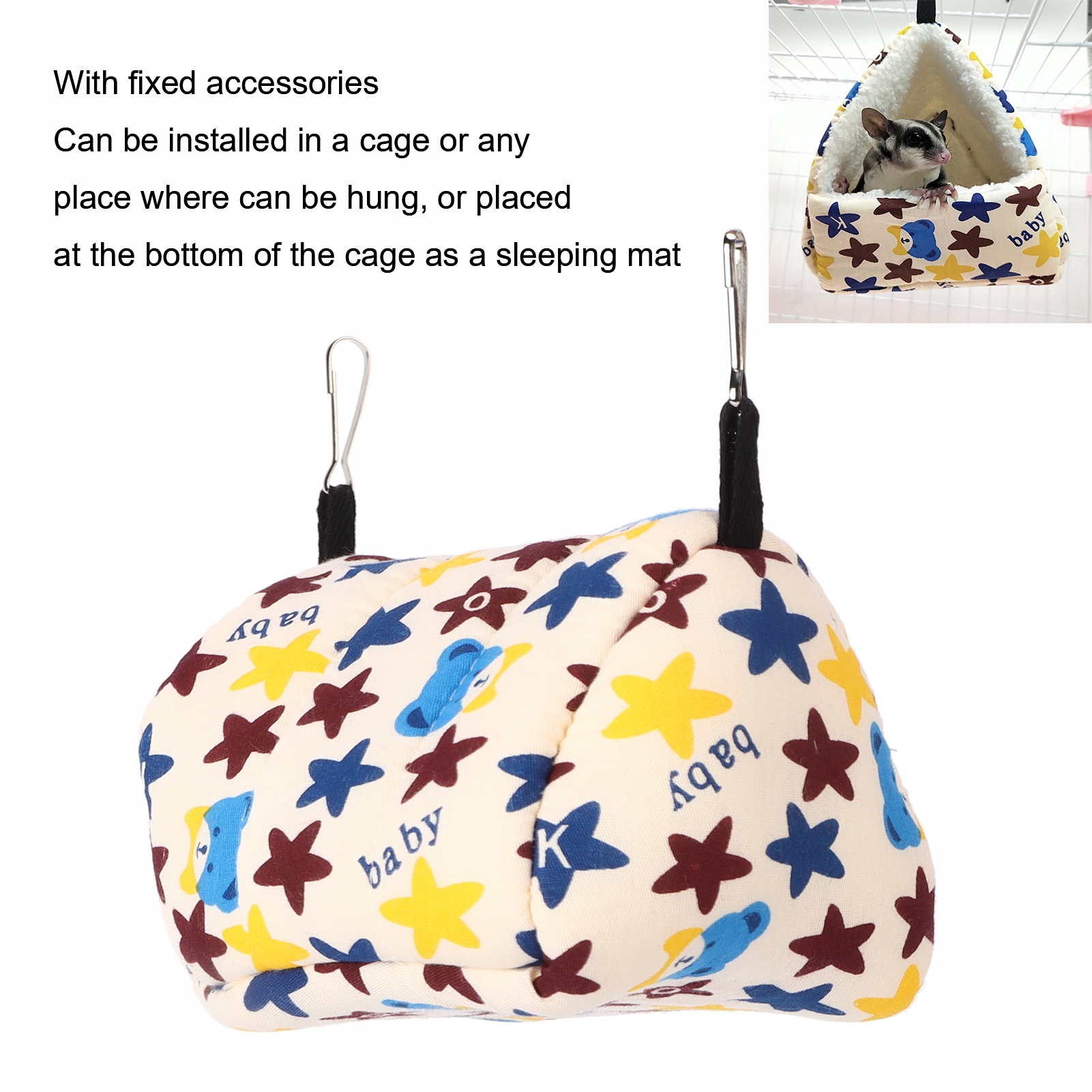 3. Завдяки постійним аксесуарам його можна встановити в клітці або в будь -якому місці, де можна повісити або поставити внизу клітки як спальний килимок.