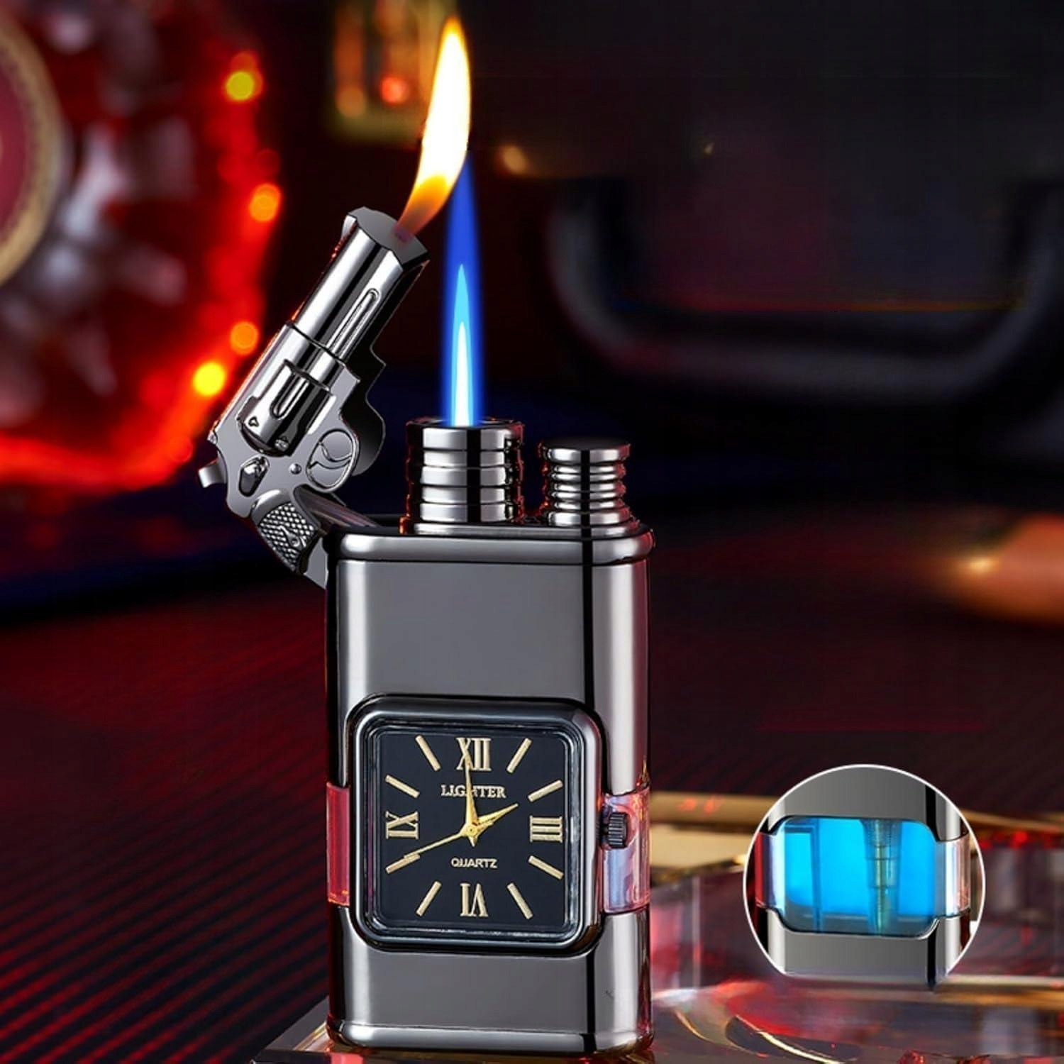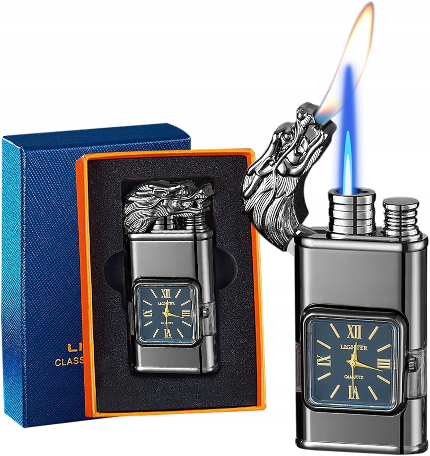 🔵1. Шаблон з полум'ям: Цей приємний продукт відрізняється хитромудрим тривимірним малюнком, завдяки якому він потрапляє в очі. Режим полум'я: Відкрийте кришку і натисніть кнопку, щоб запалити полум'я пальник. Це полум’я є вітряним і ідеально підходить для заходів на свіжому повітрі, таких як кемпінг, гриль та походи. Відпустіть кнопку, і делікатне полум'я вийде з голови, ідеально підходить для більш ніжних завдань та використовуйте в приміщенні. Поєднання елегантності та практичності: Цей годинник має елегантний квадратний кварцовий годинник, який не тільки стильний, але й практичний, додаючи щоденного персонажа до ретро -акценту. Прозорий вікно огляду дозволяє легко перевірити рівень заряду, завдяки якому ви завжди готові до дії. Ідеальний подарунок для нього: Класичні кольори підкреслюють особистість та чарівність людини. Цей унікальний, історичний годинник стане чудовим подарунком на день народження для чоловіка, тато, діда, хлопчика чи хлопця. Кожен годинник прекрасно упакований, щоб справити враження!