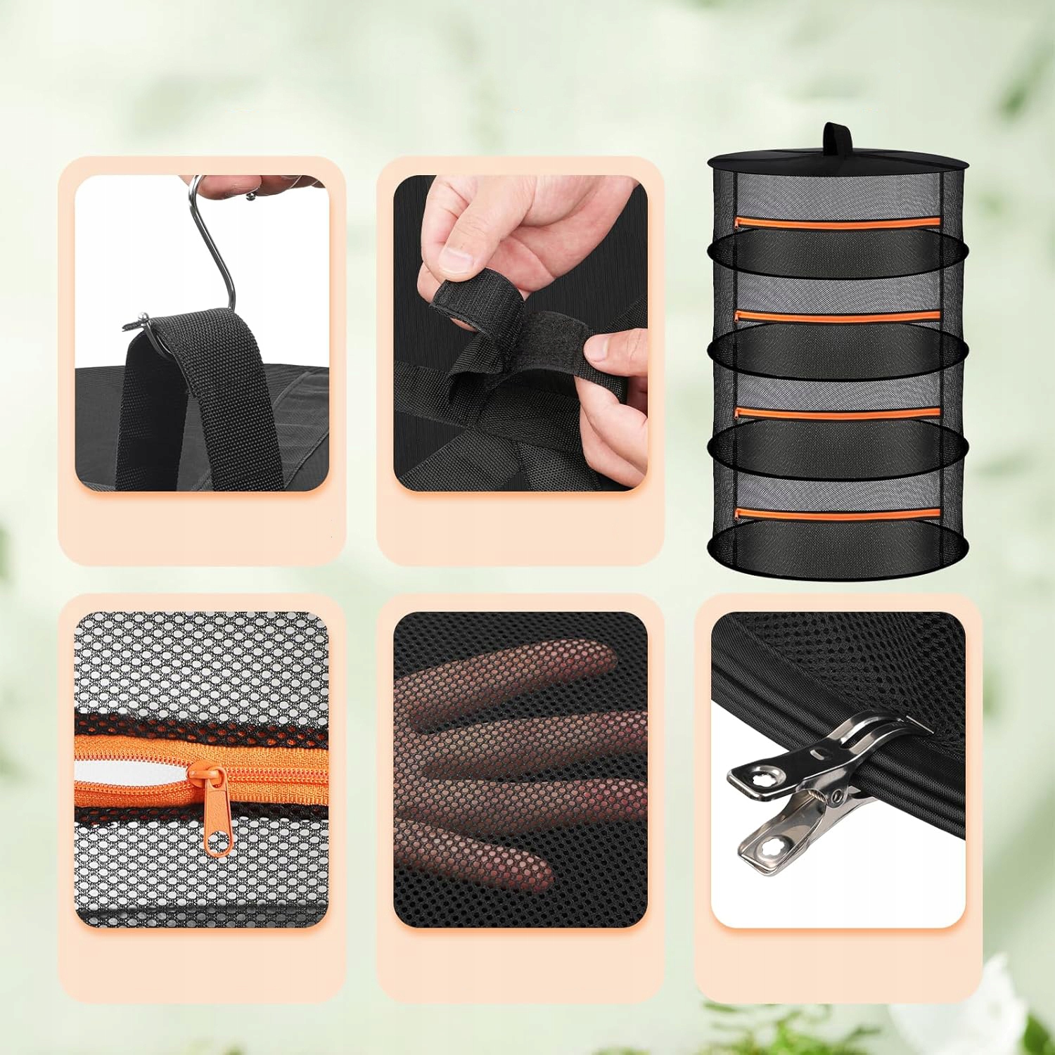 Сушарка з діаметром 60 см і висотою 80 см (4 шари на 20 см) буде вмістити трави, овочі, горіхи та інші рослини. Включає обрізання ножиць + HO гачки, ідеально підходить для звисання вдома та зовні.