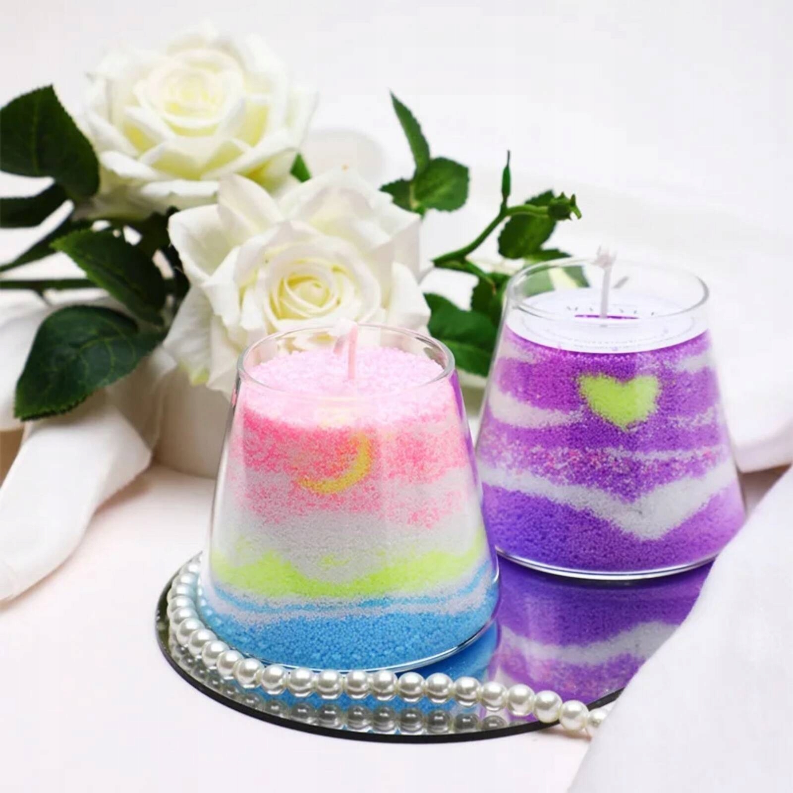Пісочні свічки, також відомі як свічки з піском, є унікальним типом свічок, які створюються шляхом наливання гранульованого воску в ємність, а не традиційного наливання розплавленого воску. Гранули воску часто кольорові, що дозволяє створити багатошарові, творчі та барвисті візерунки на свічках.