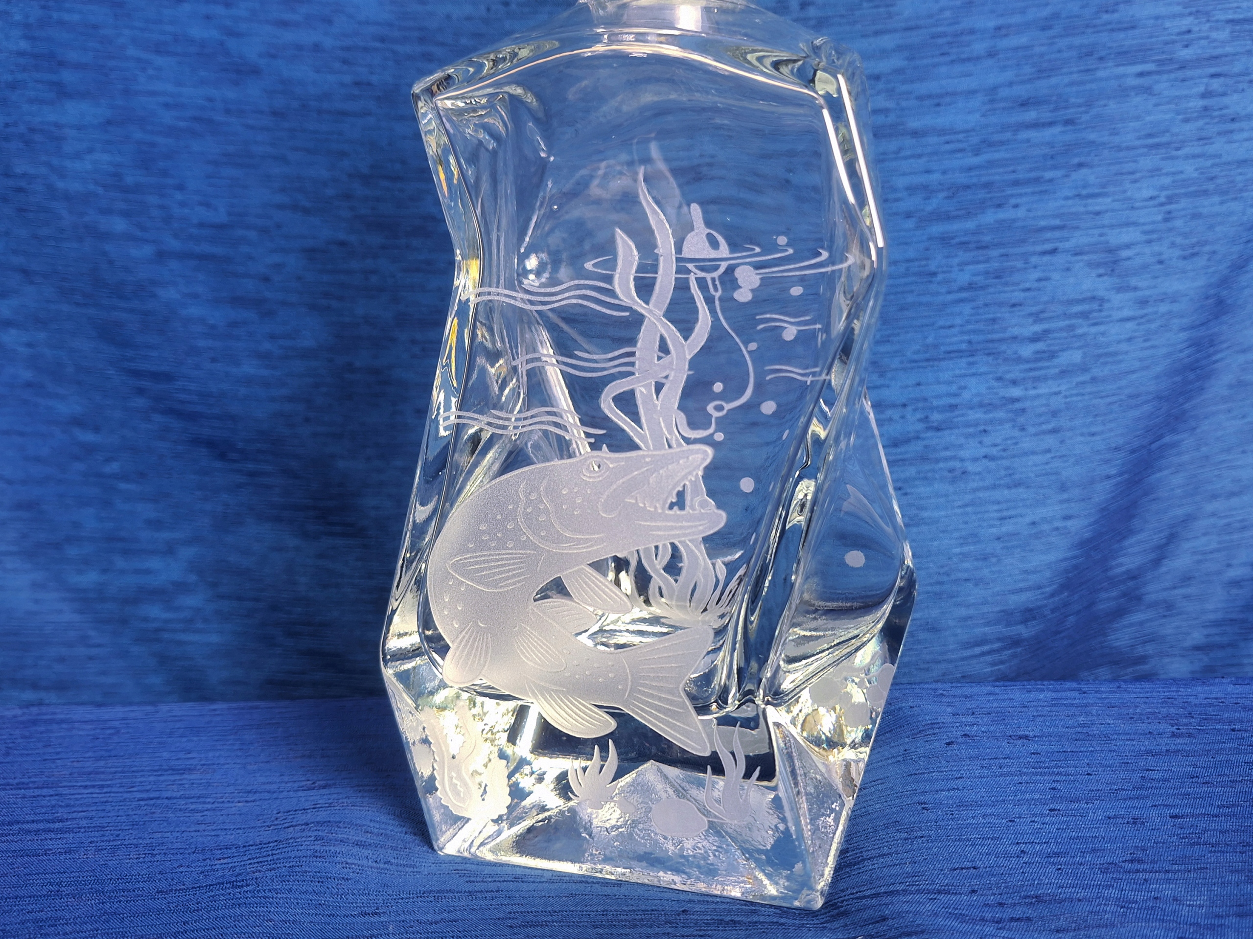 Віскі -карафе, коньяк на 750 мл, прикрашений подвійним мотивом риболовлі з щукою