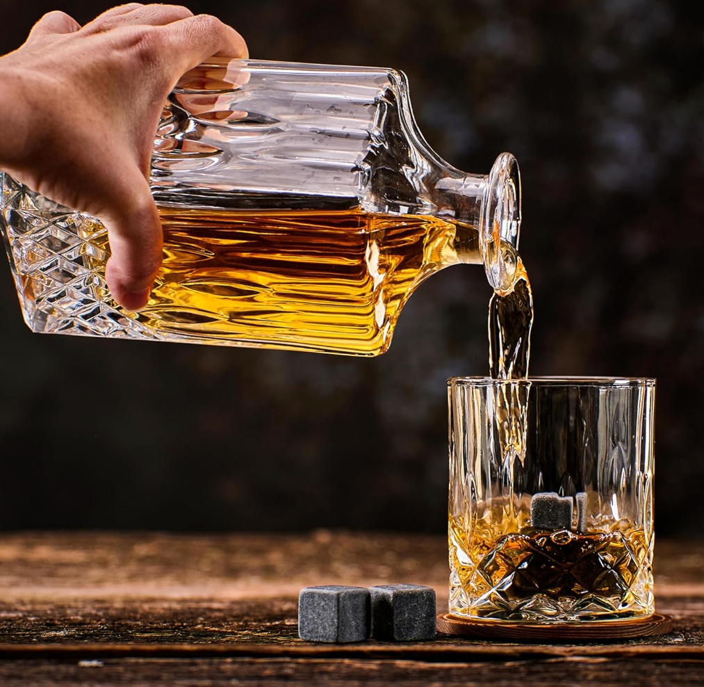 Подавайте віскі стильно завдяки цьому унікальному набору. окуляри для віскі виготовлені з великої якості. Скло також надувне, завдяки якому воно має розкішний і делікатний вигляд.