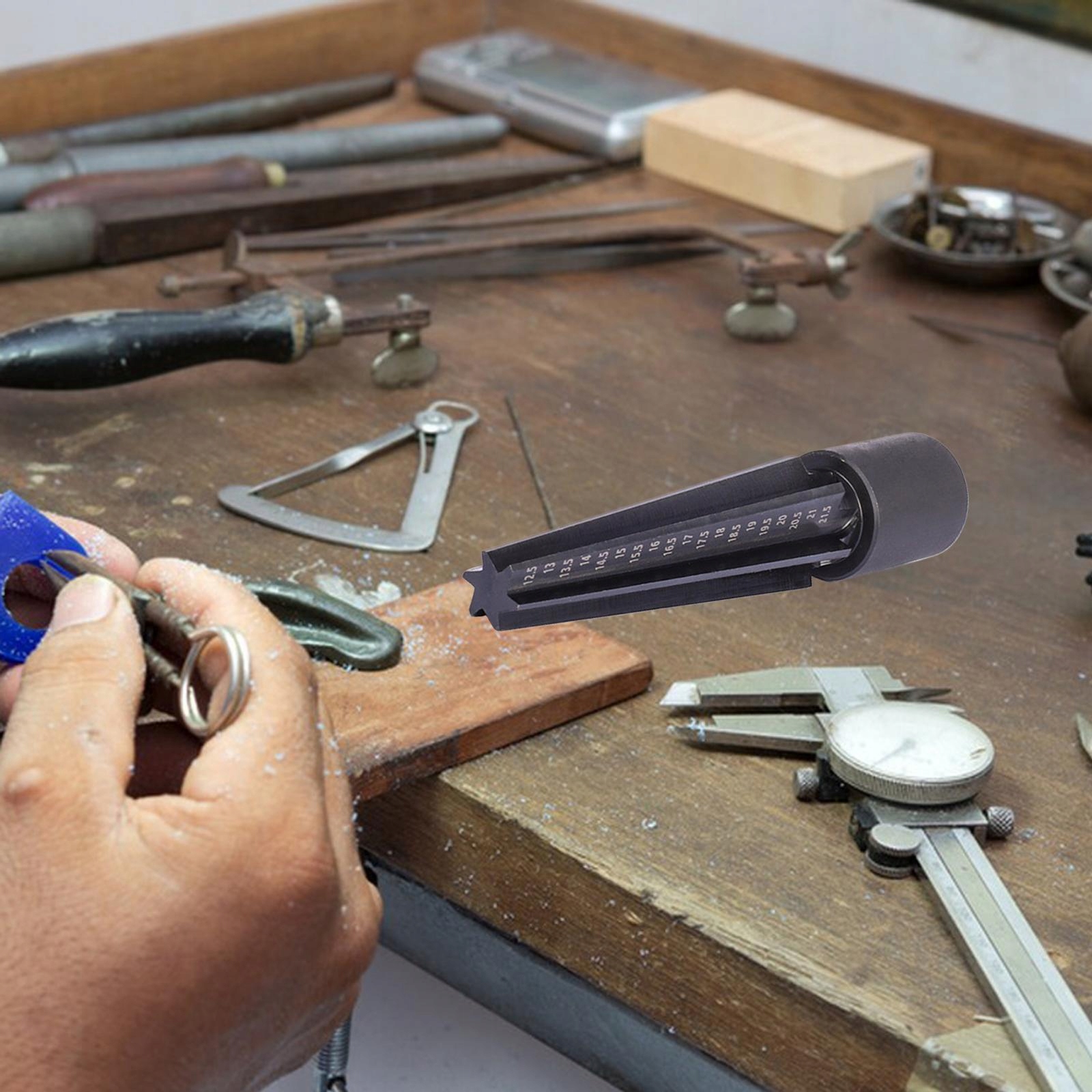 [Функція] Пристрій розміру трубки використовується для збільшення діаметра отворів моделі до відповідного розміру пальця. Край, вставлений у звужувальну частину, для полегшення вибору розміру. Кільця, які цей лічильник може видалити. Неодмінний інструмент для творців та працівників, які займаються ремонтом