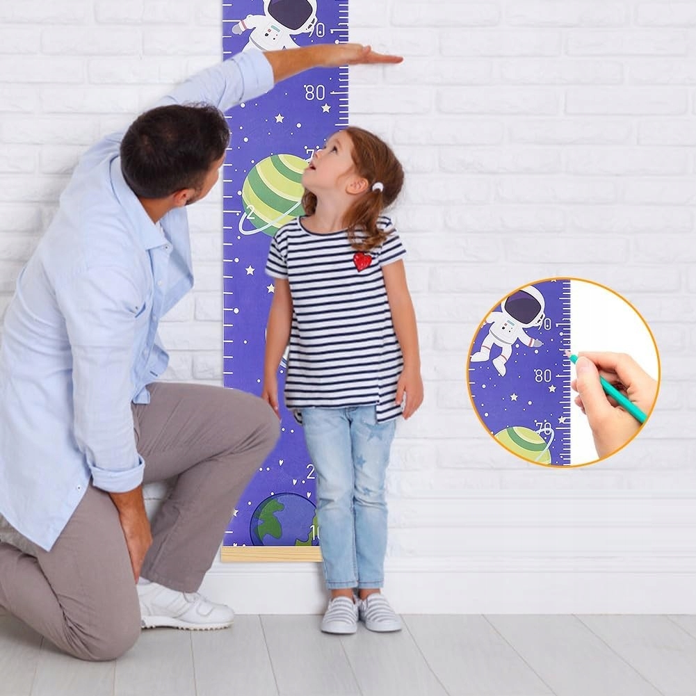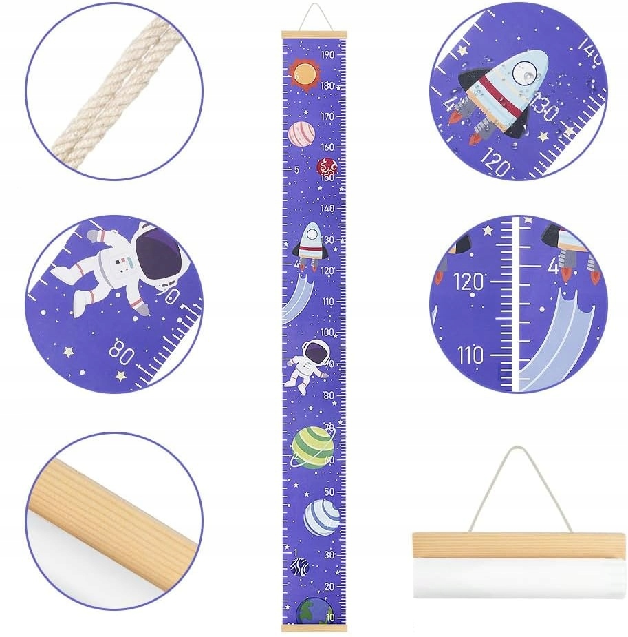 Вимірювання вимірювання вимірювання зростання - це не лише практичний інструмент для моніторингу прогресу дитини, але й чарівне прикраса для кімнати малюка. Зроблений з високоякісних матеріалів, довжиною 180 см прикрашений барвистим мотивом космосу, що означає, що вимірювання росту стає веселою. Завдяки його простій установці ви можете покласти його на стіну де завгодно, що сприятиме регулярним вимірюванням.