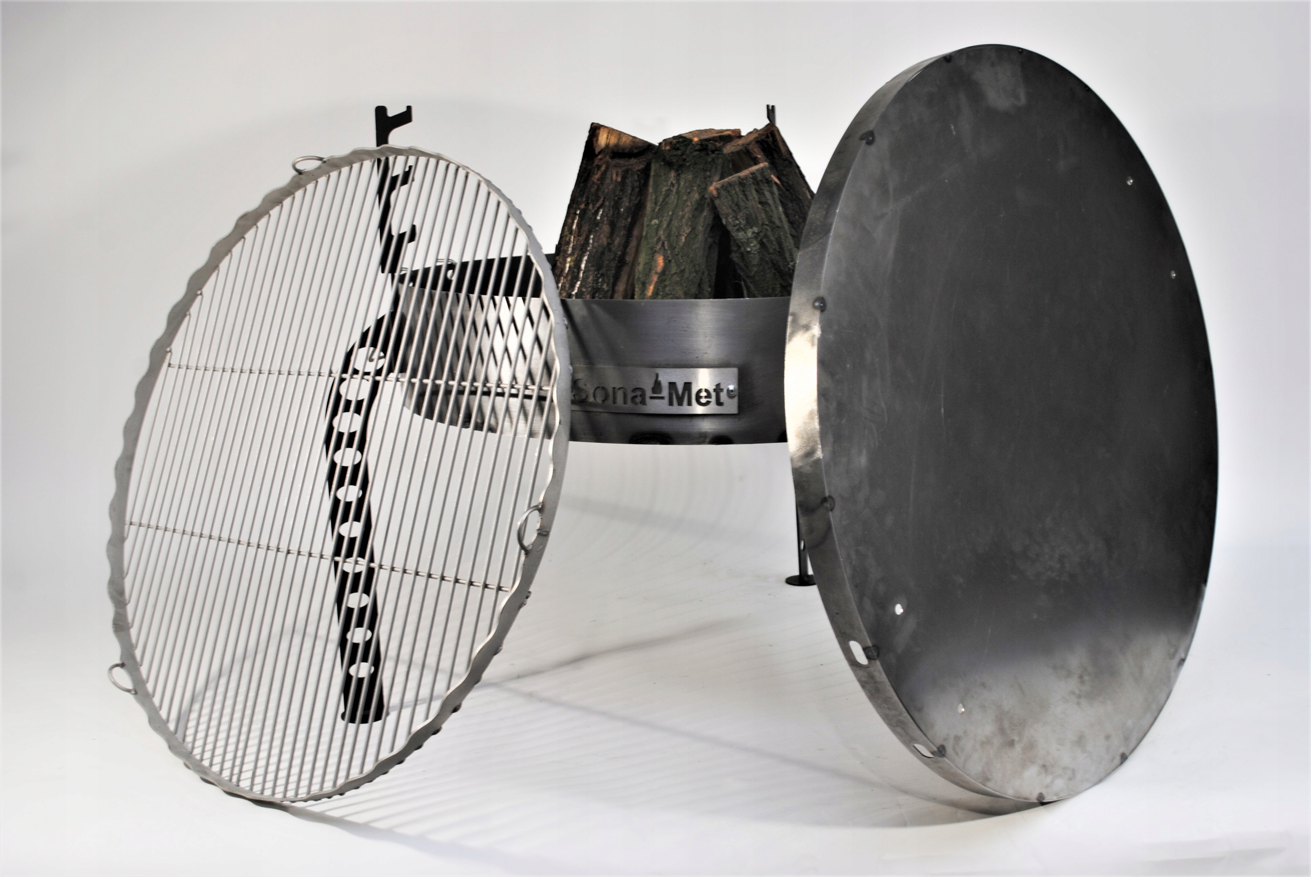 Він оснащений 3 металевими знімними ніжками товщиною 50 см і 4,00 мм, а також металевими ручками, які також знімаються, щоб не нагріватися, використовуються для регулювання решітки та безпечного переміщення каміна в інше місце. подія зміни, наприклад .