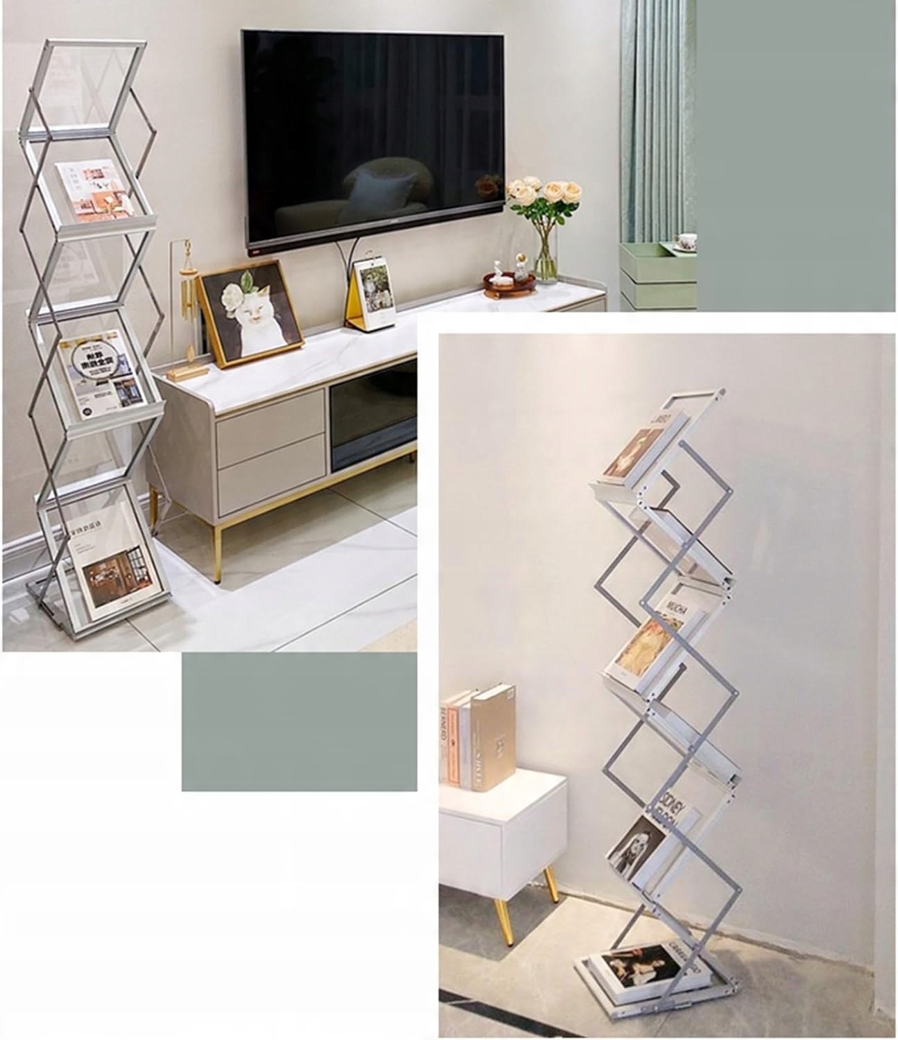 ✅ Завдяки унікальному дизайну Z-Shape підставка забезпечує рівномірне розташування листівок і журналів з обох боків, максимізуючи видимість.
