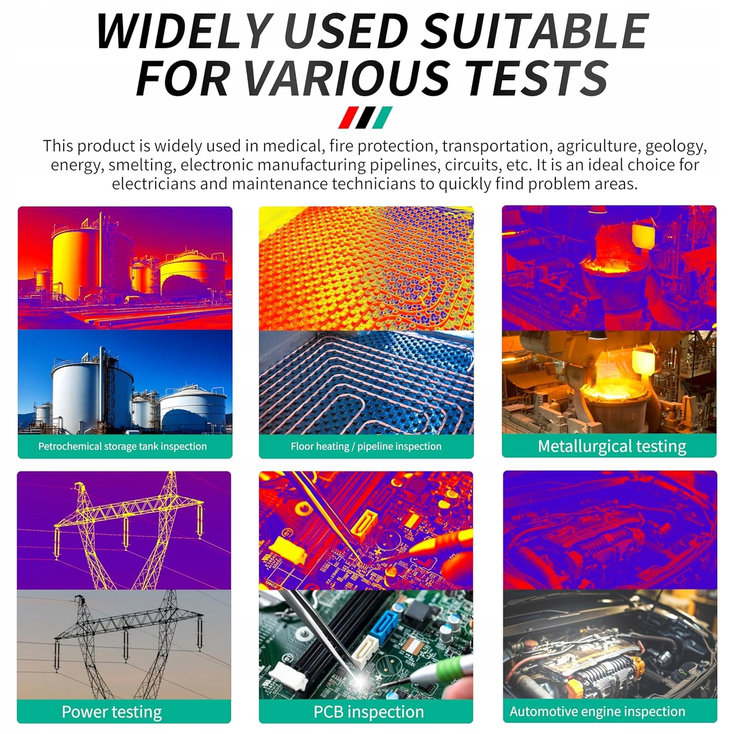- Портативна інфрачервона теплова трубка: можливість одночасно виявити температуру на 57 600 балів. Безпосереднє розташування точок вимірювання температури за допомогою зорової термографії. Швидке виявлення дефектів, гарантуючи жодних навичок чи помилок розпізнавання
