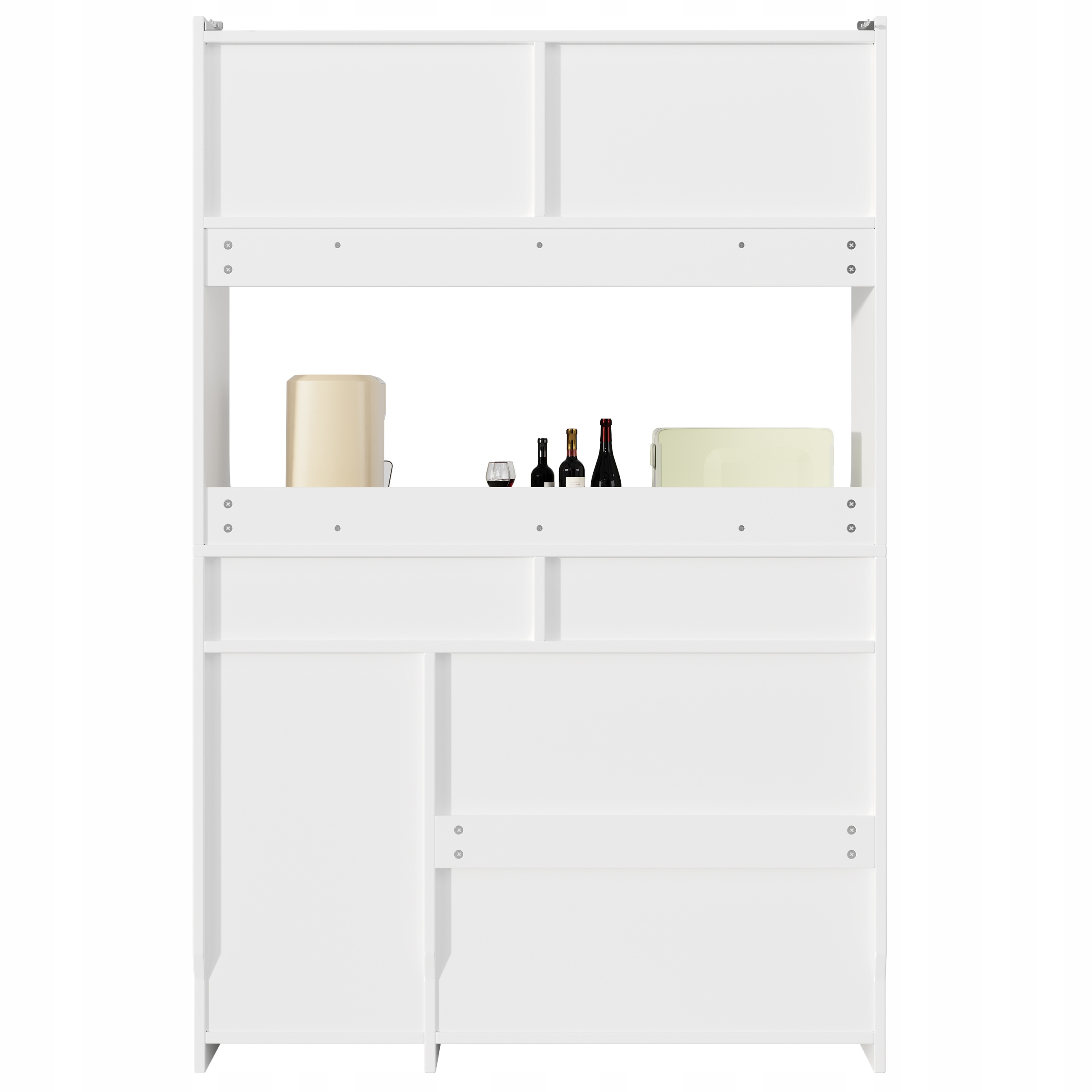 - Цей високий шафа оснащений професійним пристроєм, що перевищує, що забезпечує подвійний захист завдяки армованою ручкою стіни, ефективно запобігаючи ризику перегортання шафи. Це особливо підходить для сімей з дітьми чи тваринами, забезпечуючи безпеку та спокій, коли ви зайняті на кухні. 4 Його можна використовувати як сервант, шафа для зберігання, шафа для книг, шафа в передпокої або кухонній стільниці.