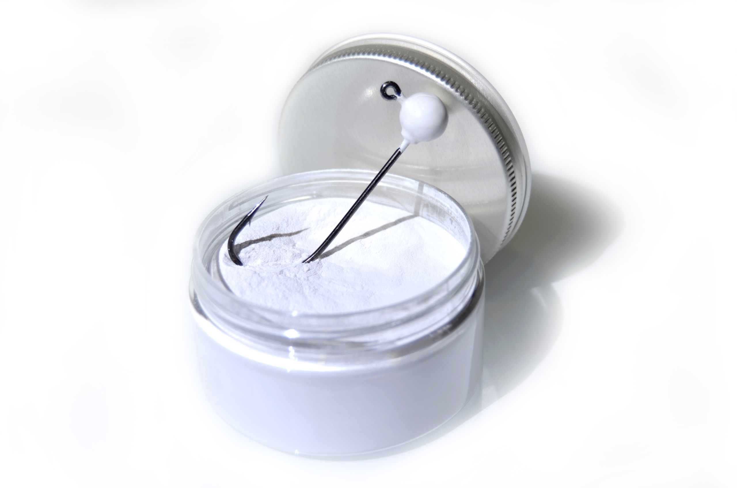 - Теплу голову занурюємо в порошок, потім швидко зніміть її та струсіть надлишки, вдаривши гачком по краю контейнера.