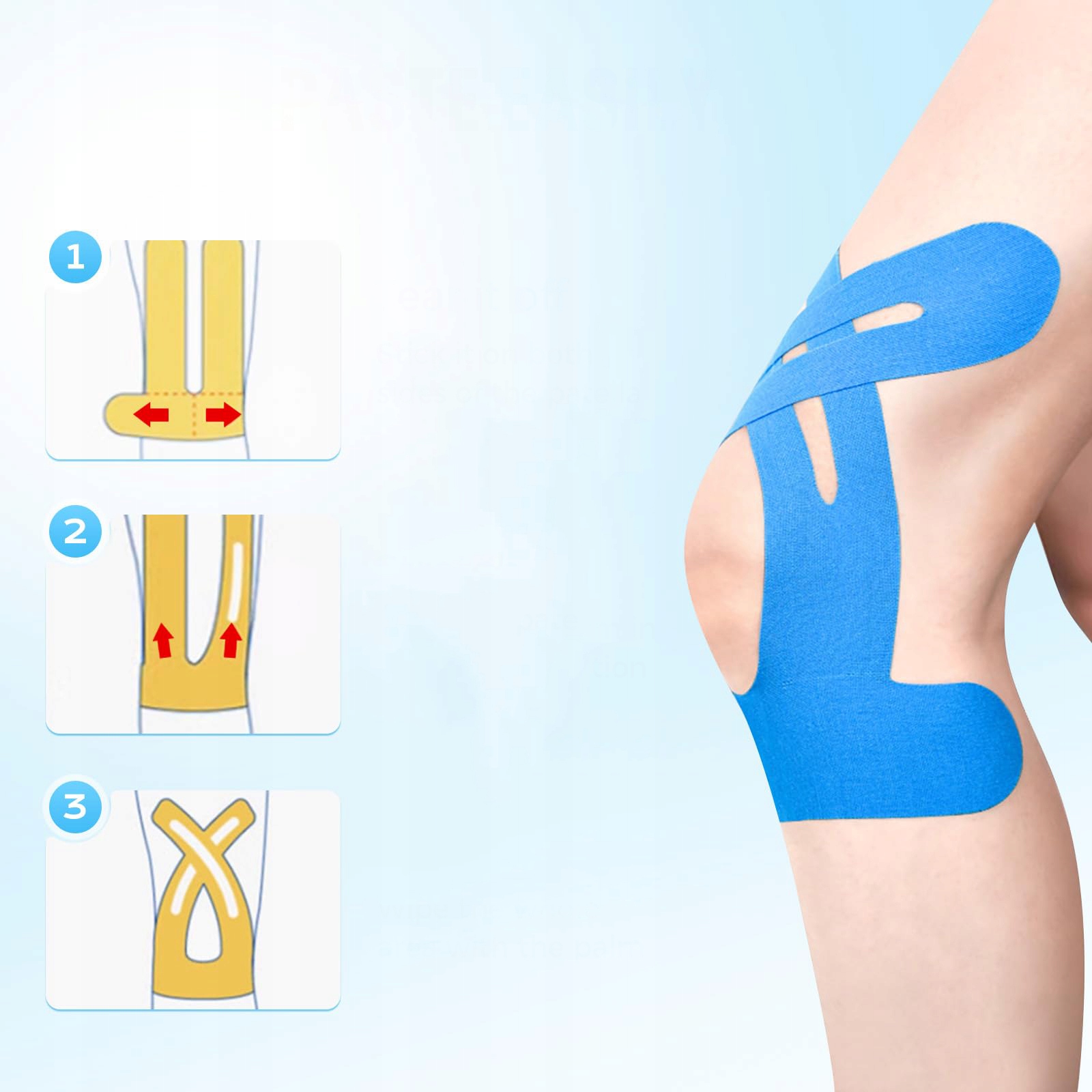 попередні ремінці для полегшення застосування: Кожен ремінь попередньо розрізаний розміром 22 х 25 см, що полегшує та прискорює додаток. Відокремлена кінезіологічна стрічка на коліна забезпечує ідеальну відповідність стрічки коліна, що забезпечує цільову підтримку та стабільність. Тонка і гнучка структура стрічки забезпечує комфорт під час фізичних навантажень без обмеження рухів, що дозволяє зосередитись на тренуванні чи спортивній діяльності.