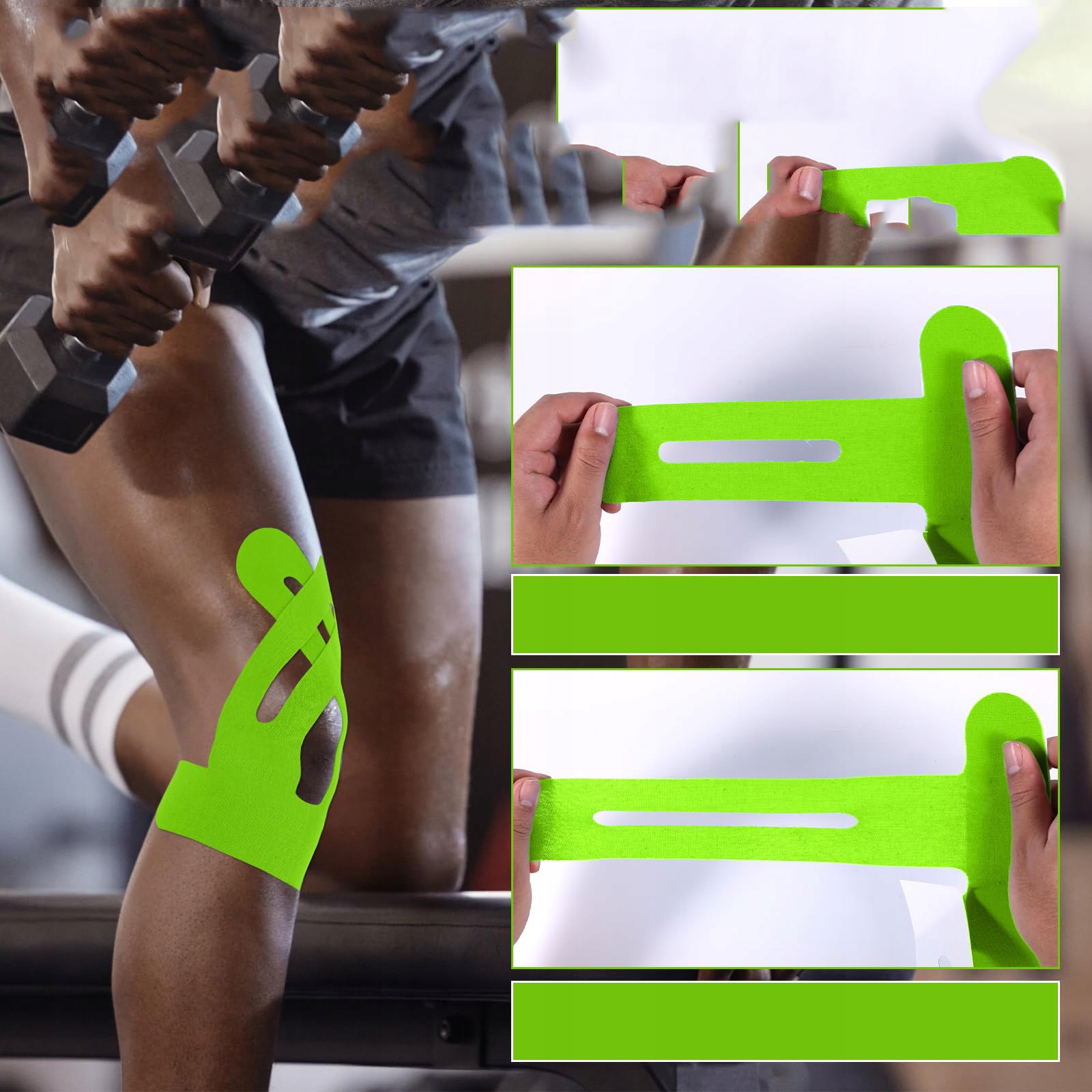 попередні ремінці для полегшення застосування: Кожен ремінь попередньо розрізаний розміром 22 х 25 см, що полегшує та прискорює додаток. Відокремлена кінезіологічна стрічка на коліна забезпечує ідеальну відповідність стрічки коліна, що забезпечує цільову підтримку та стабільність. Тонка і гнучка структура стрічки забезпечує комфорт під час фізичних навантажень без обмеження рухів, що дозволяє зосередитись на тренуванні чи спортивній діяльності.