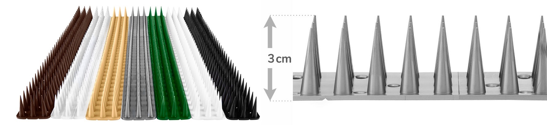 ВИСОКІ 3 СМ ТА ЩІЛЬНІ ШИПИ 105 ШТ / 50 СМ БУДУТЬ ЕФЕКТИВНО ЗАХИСТИТИ ПОВЕРХНІ ВІД МАЛИХ ТА ВЕЛИКИХ ПТАХІВ