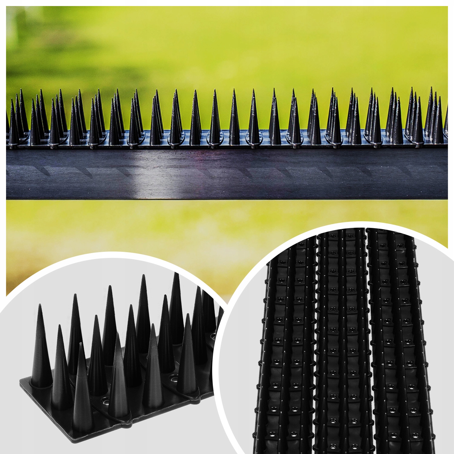 Пластикові шипи не дозволяють голубам та іншим великим птахам сідати, приземлятися та гніздуватися. Шипи проти птахів можна встановлювати в таких місцях, як балкони, балюстради, поручні, навіси, дахи, карнизи, касети, кондиціонери та на інших архітектурних елементах.