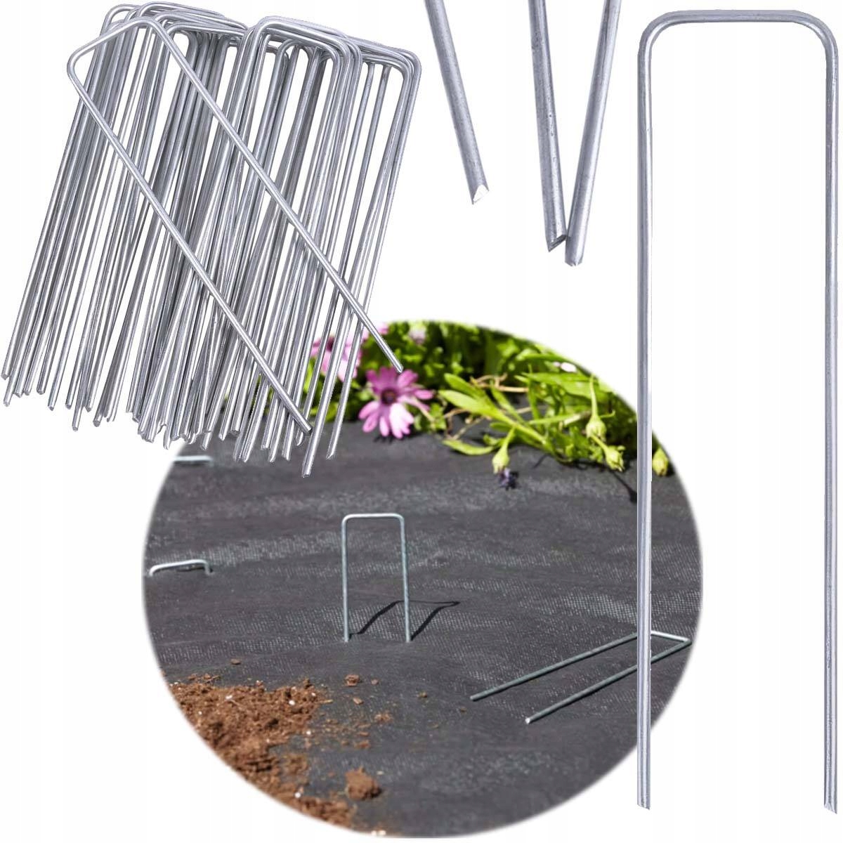Виробник був виготовлений з сильного сталевого дроту товщиною 3 мм закінчується різким кінцем , що означає, що забивання п'яти в землю надзвичайно просто. Через розміри металеві високі підбори гарантують стабільне утримання агротестилю, агротекстильного тощо, зберігаючи їх близько до землі. Мороз, вони є ефективним інструментом у захисті рослин.