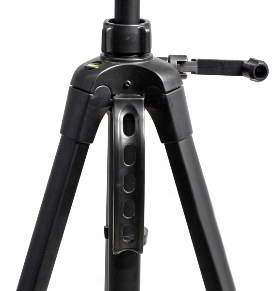 Штатив має два рівні, видимі на фото, допомагаючи в точному положенні штатива. Один рівень визначає положення ніжок штатива, інший визначає положення головки штатива. голова в потрібному положенні